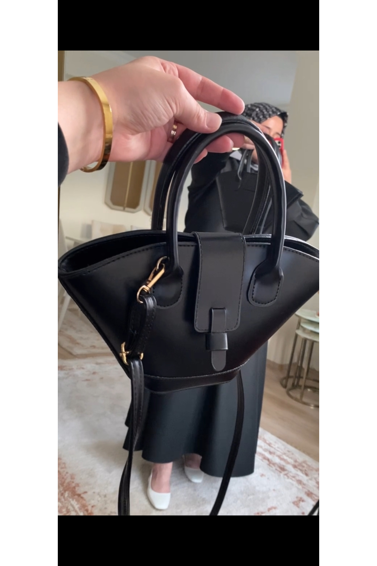 Kadın siyah deri el ve omuz askılı ayarlanabilir çanta Kadın siyah deri el ve omuz askılı ayarlanabilir çanta 0003 تک سایز