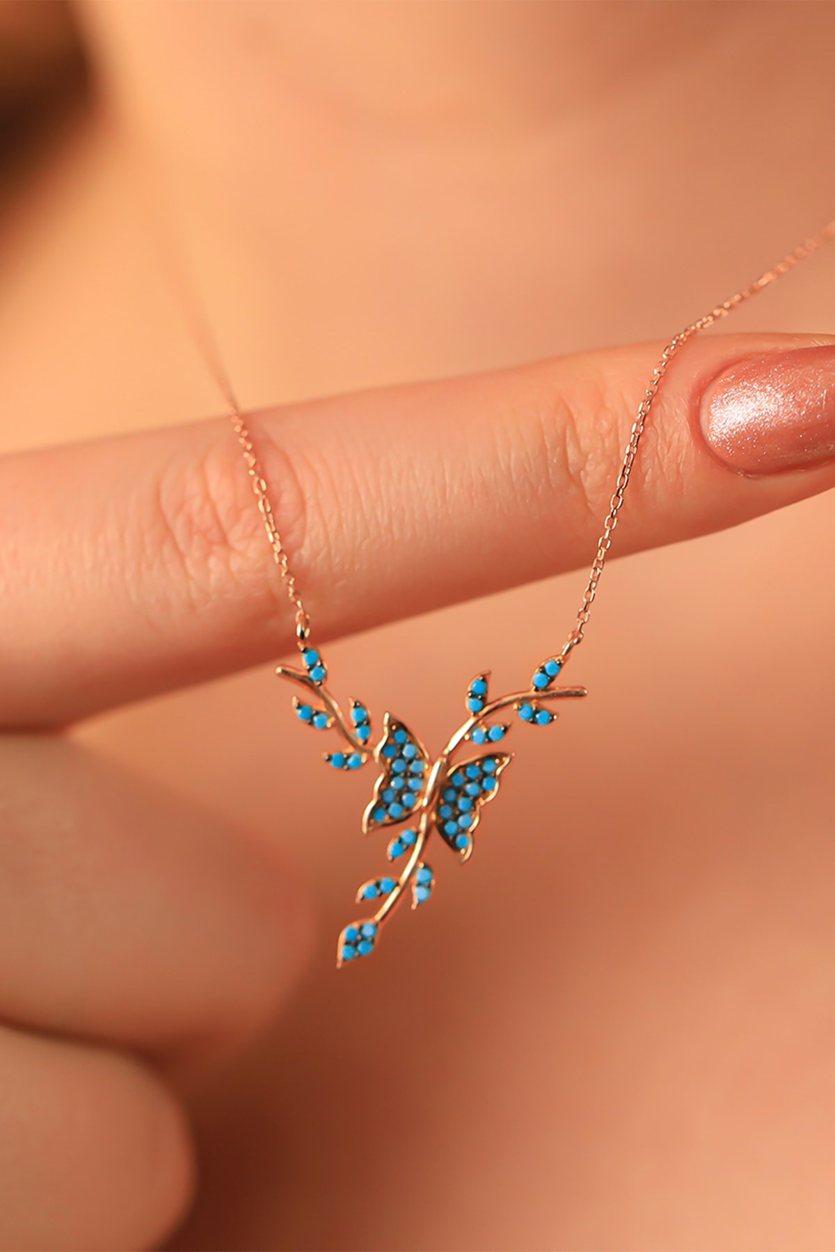 Kadın Firuze Taşlı Çelik Kolye Kadın Firuze Taşlı Çelik Kolye LZZ-9045 50 cm