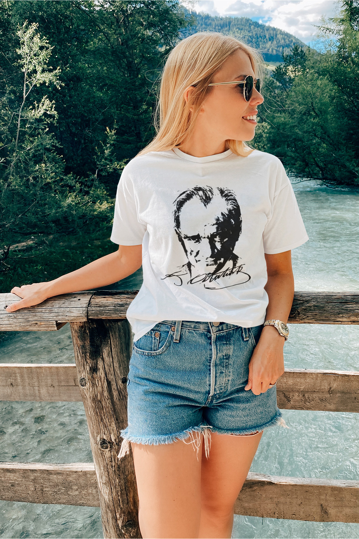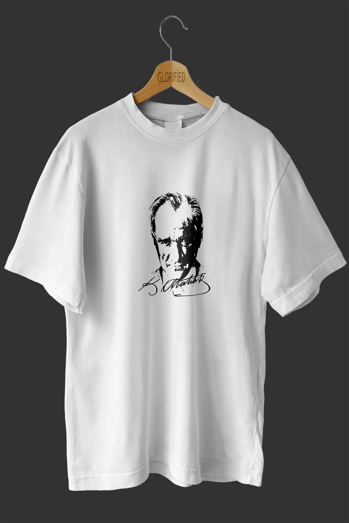 Atatürk Baskılı Beyaz Kısa Kollu T-shırt Atatürk Baskılı Beyaz Kısa Kollu T-shırt AB1841don78don 3XL/4XL