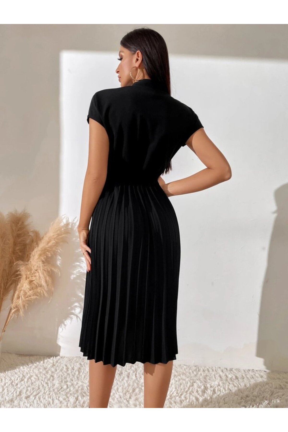 Kadın Kısa Kollu Hakim V Yakalı Pileli Janjan Krep Elbise Kadın Kısa Kollu Hakim V Yakalı Pileli Janjan Krep Elbise VY-6889bca5cc576 2XL-3XL