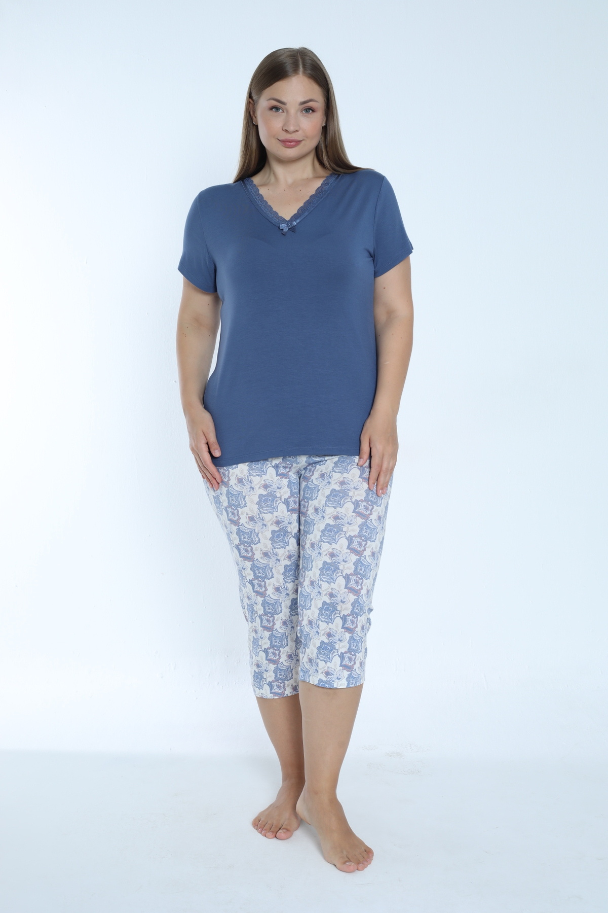 Kadın Büyük Beden Viskon Penye Kumaş Kısa Kollu Kapri Takım 14601 Kadın Büyük Beden Viskon Penye Kumaş Kısa Kollu Kapri Takım 14601 4XL