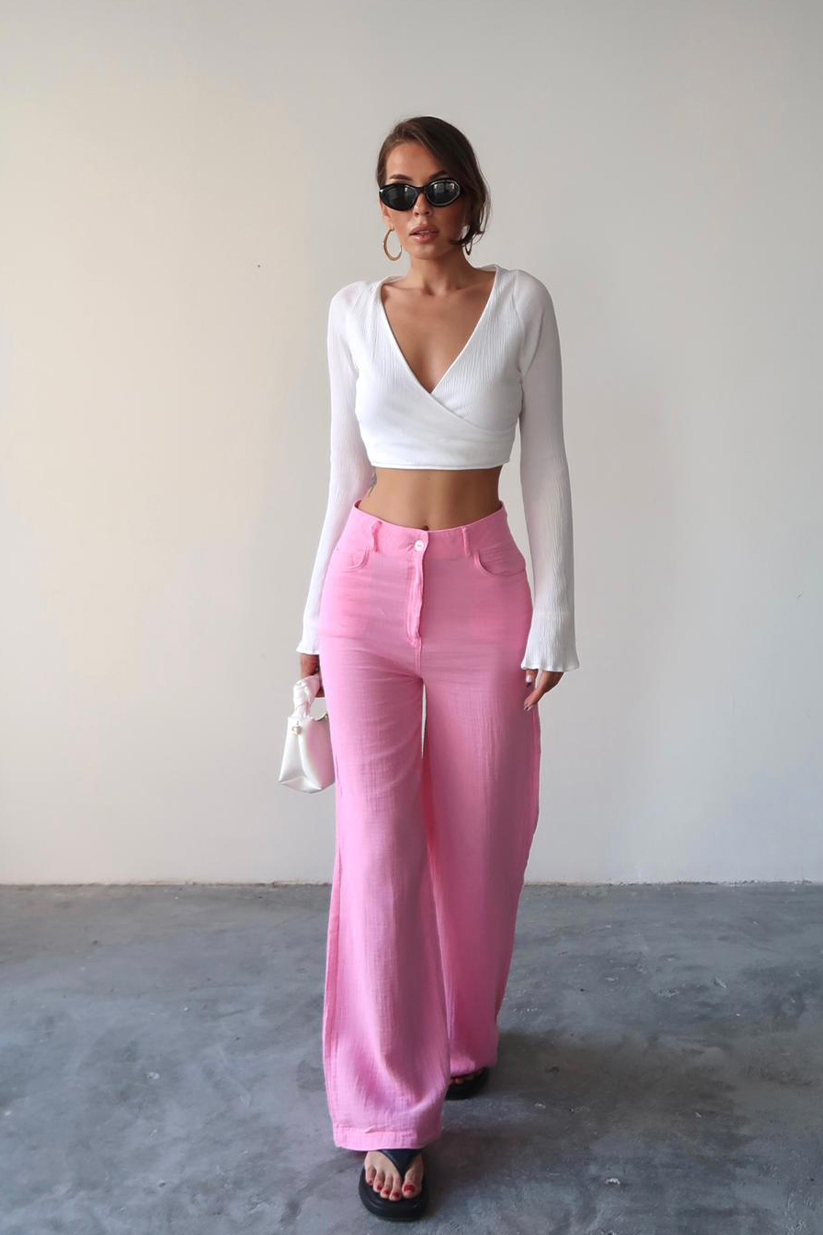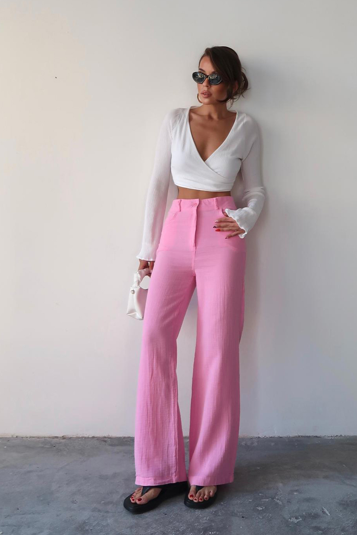 Kadın Pembe Beş Cepli Bol Paça Müslin Pantolon Vs00674 Kadın Pembe Beş Cepli Bol Paça Müslin Pantolon Vs00674 VS00674 L