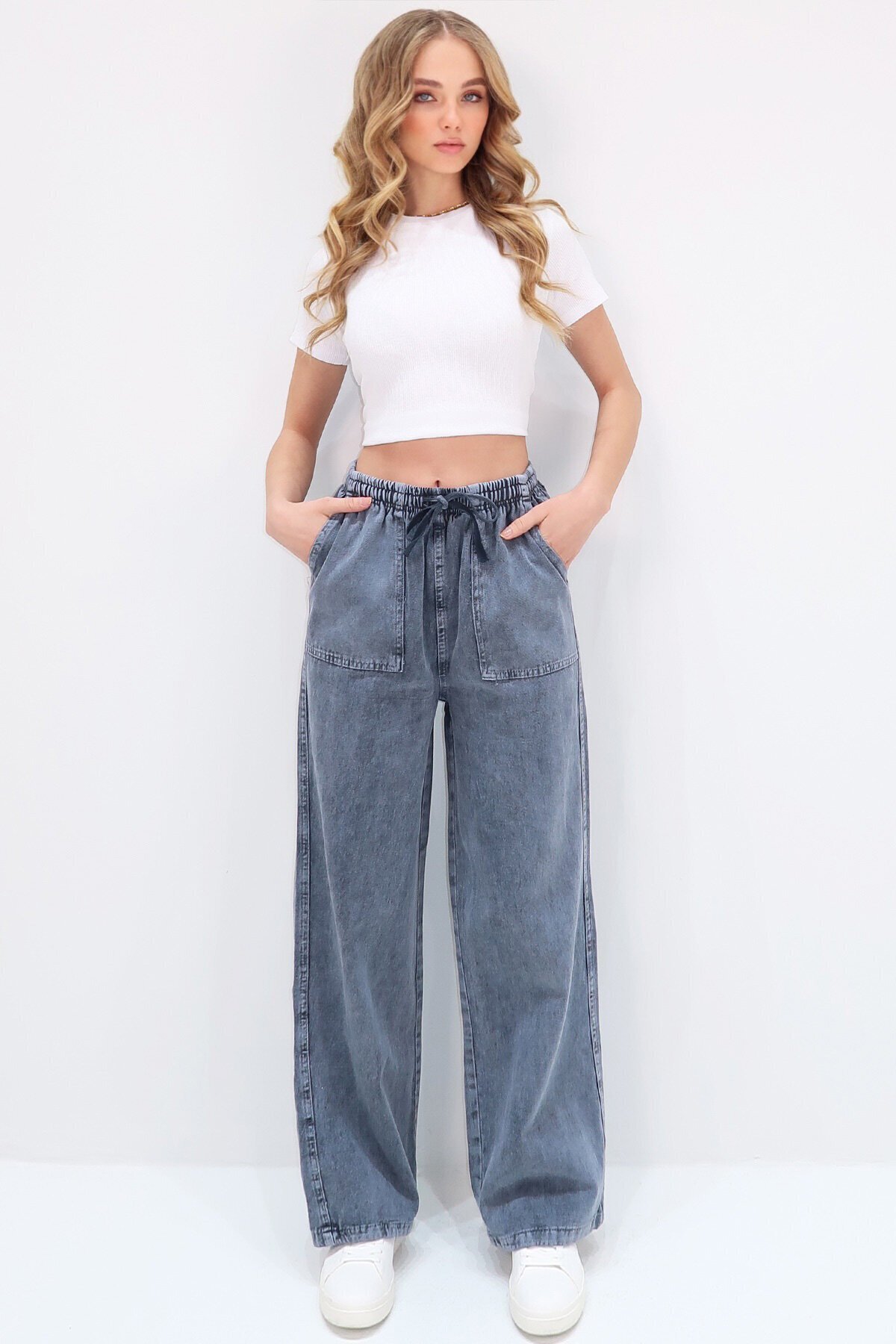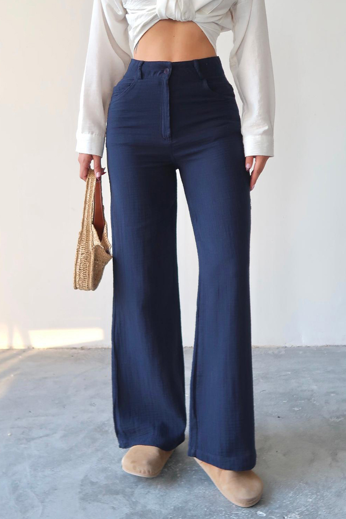 Kadın Lacivert Beş Cepli Bol Paça Müslin Pantolon Vs00674 Kadın Lacivert Beş Cepli Bol Paça Müslin Pantolon Vs00674 VS00674 L
