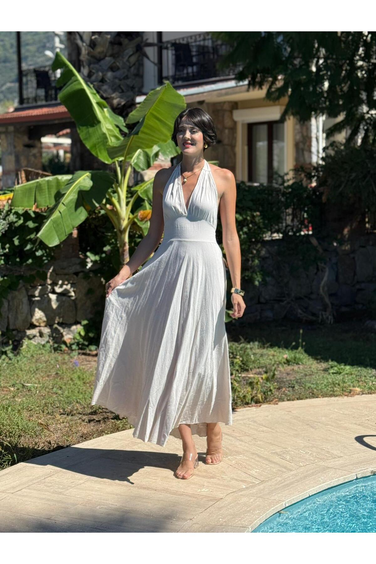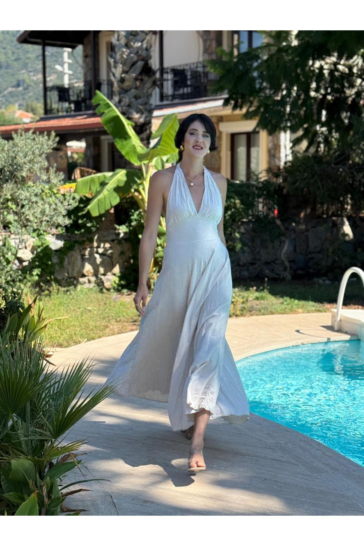 PT25071 Omuz Bağlamalı Belden Kuşaklı Sırtı Açık Coton Elbise Krem PT25071 Omuz Bağlamalı Belden Kuşaklı Sırtı Açık Coton Elbise Krem PT25071Krem Standart