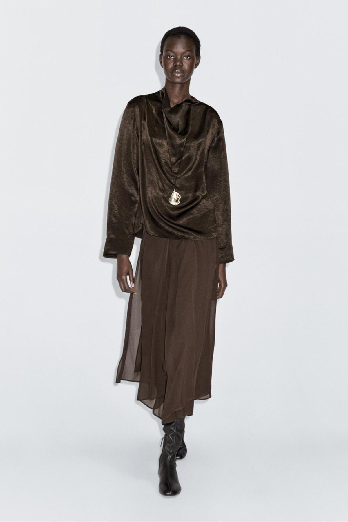 Bağcıklı dökümlü bluz Bağcıklı dökümlü bluz 00110779205131691 L