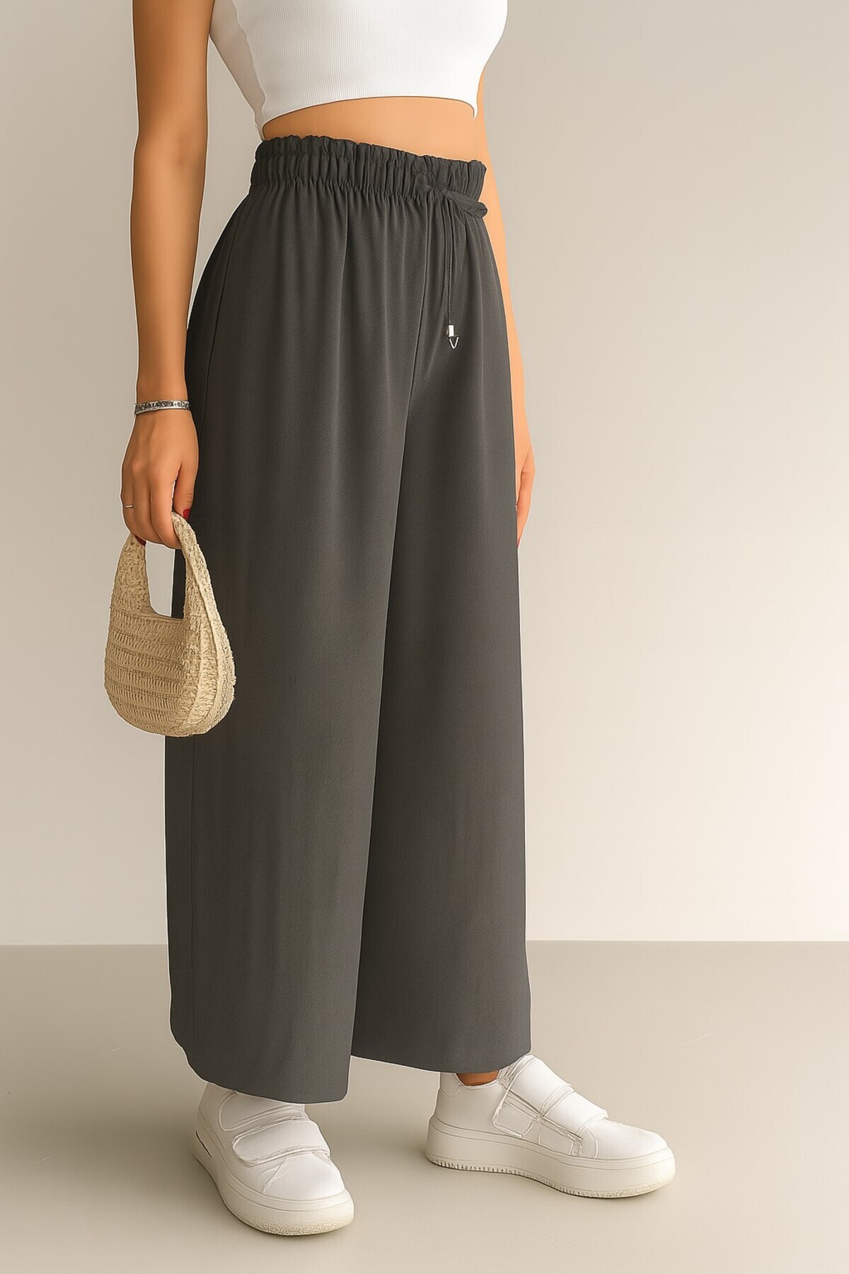 Kadın ANTRASİT Beli Lastikli Bağcıklı Desenli Viskon Palazzo Pantolon VS00371 Kadın ANTRASİT Beli Lastikli Bağcıklı Desenli Viskon Palazzo Pantolon VS00371 2XL