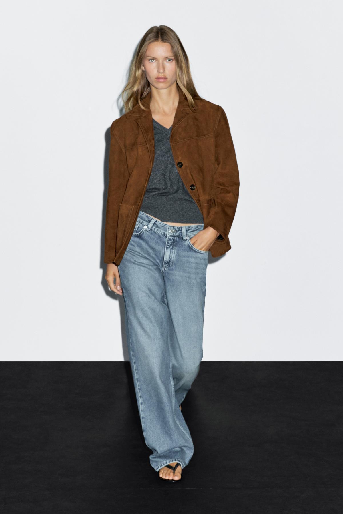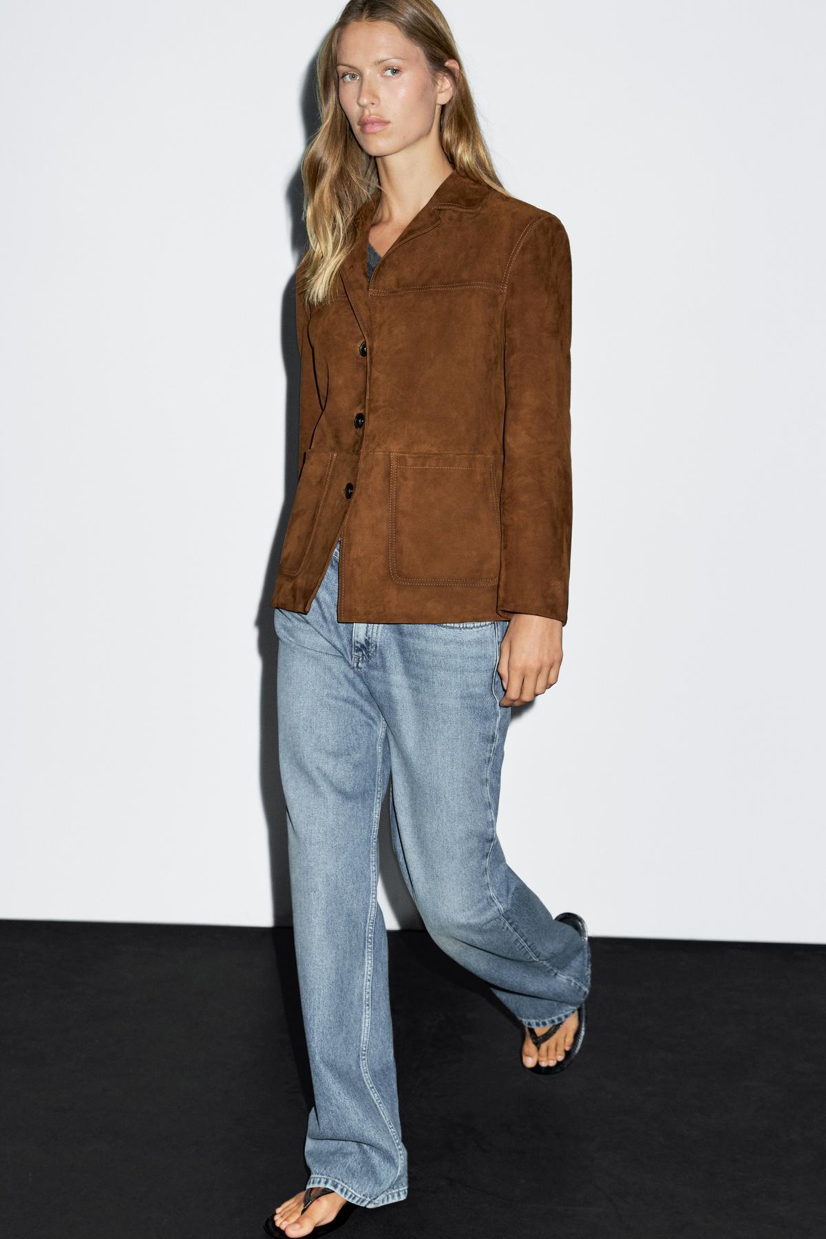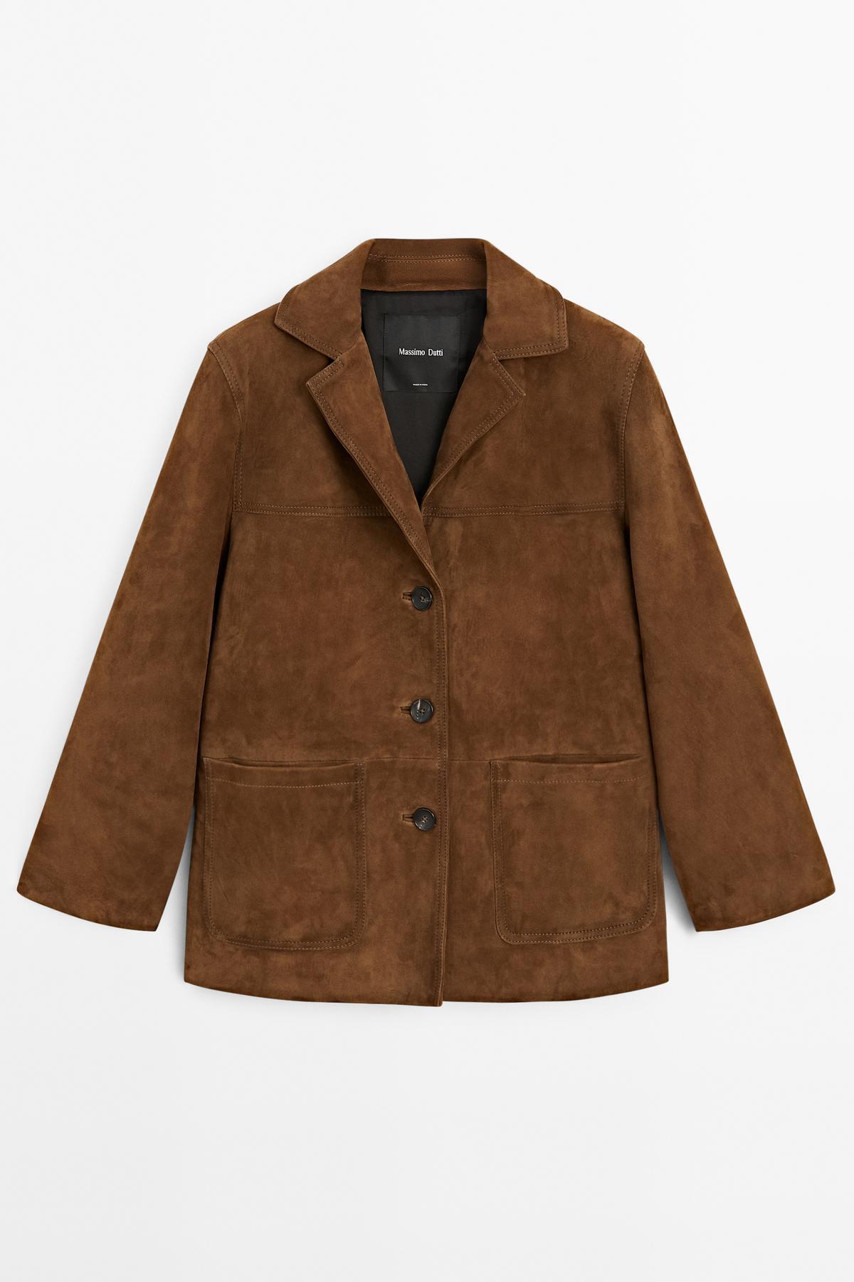 Dikişli süet deri blazer Dikişli süet deri blazer 00110779204720560 XL
