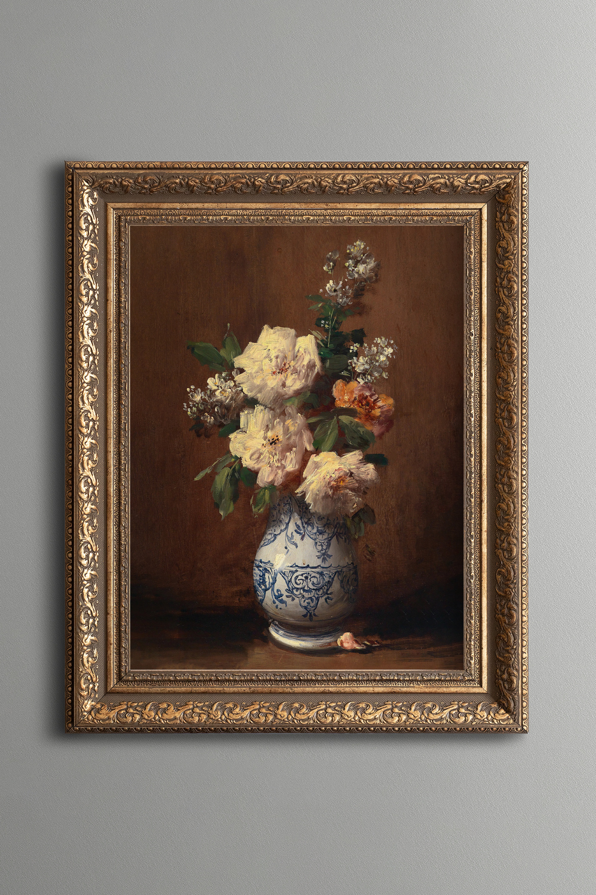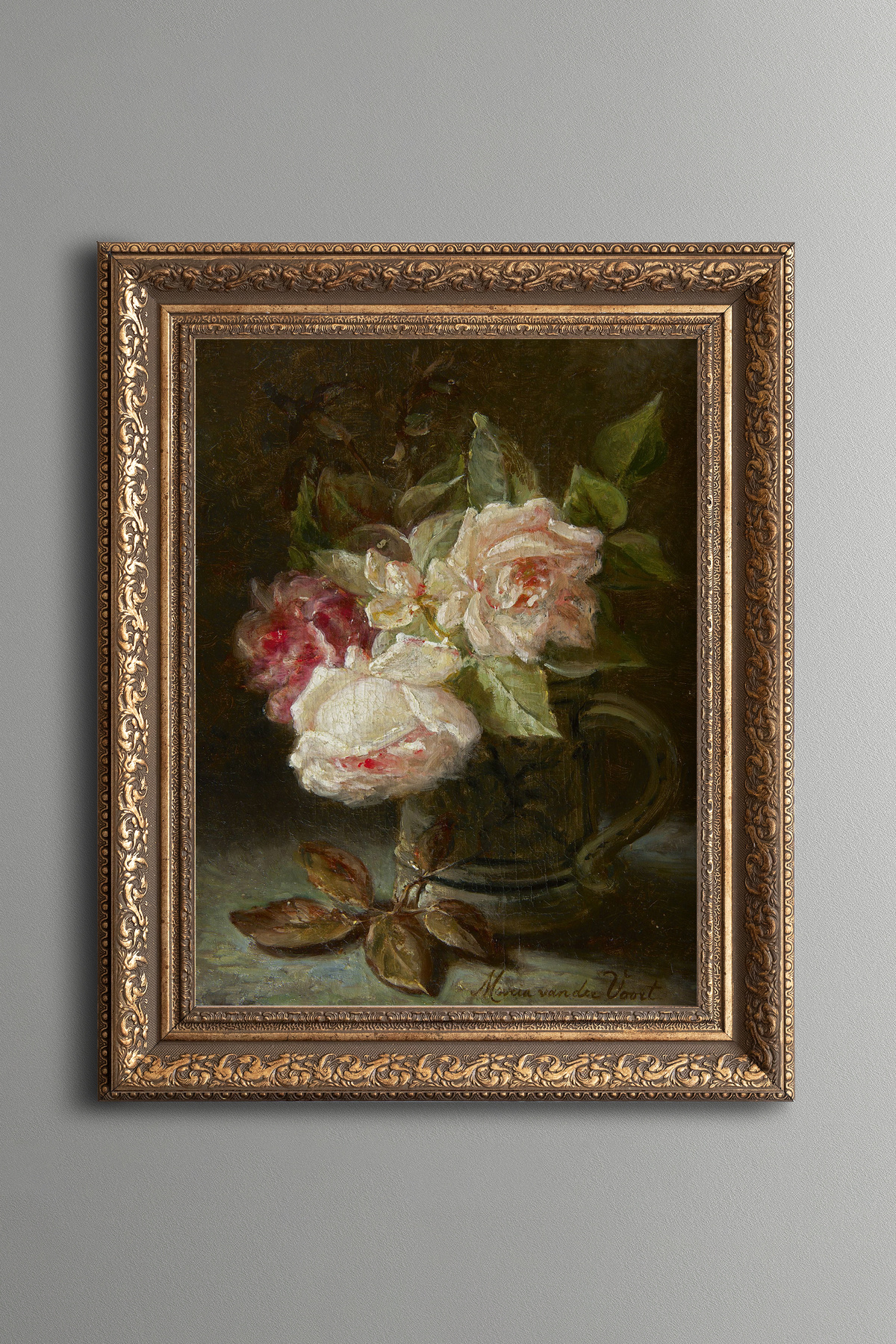 Güllerle Natürmort - Vintage Desenli Çerçeve Güllerle Natürmort - Vintage Desenli Çerçeve art00529 50 x 70