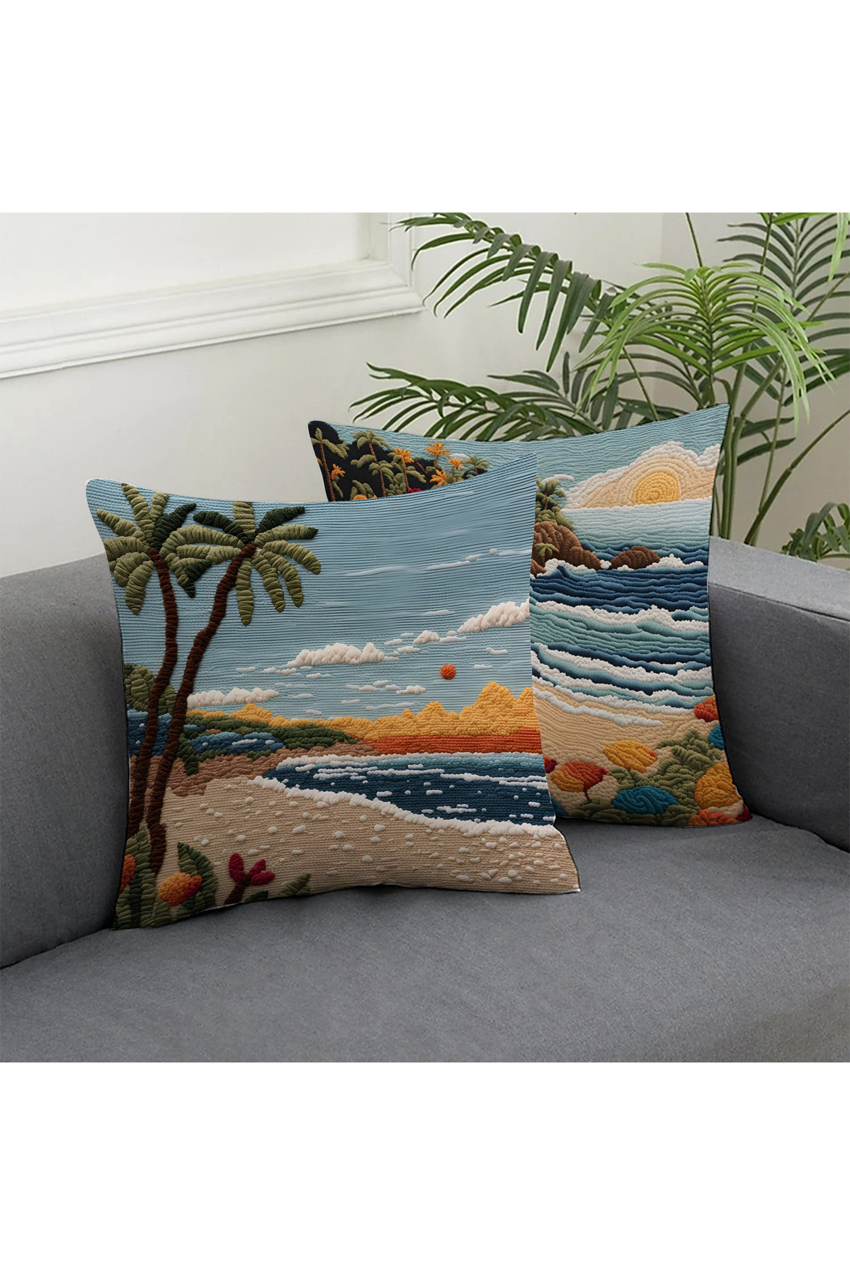 2 Li Kombin Nakış Desen Deniz Manzara Dijital Baskılı Kırlent Kılıfı 2 Li Kombin Nakış Desen Deniz Manzara Dijital Baskılı Kırlent Kılıfı ALK025 43 x 43