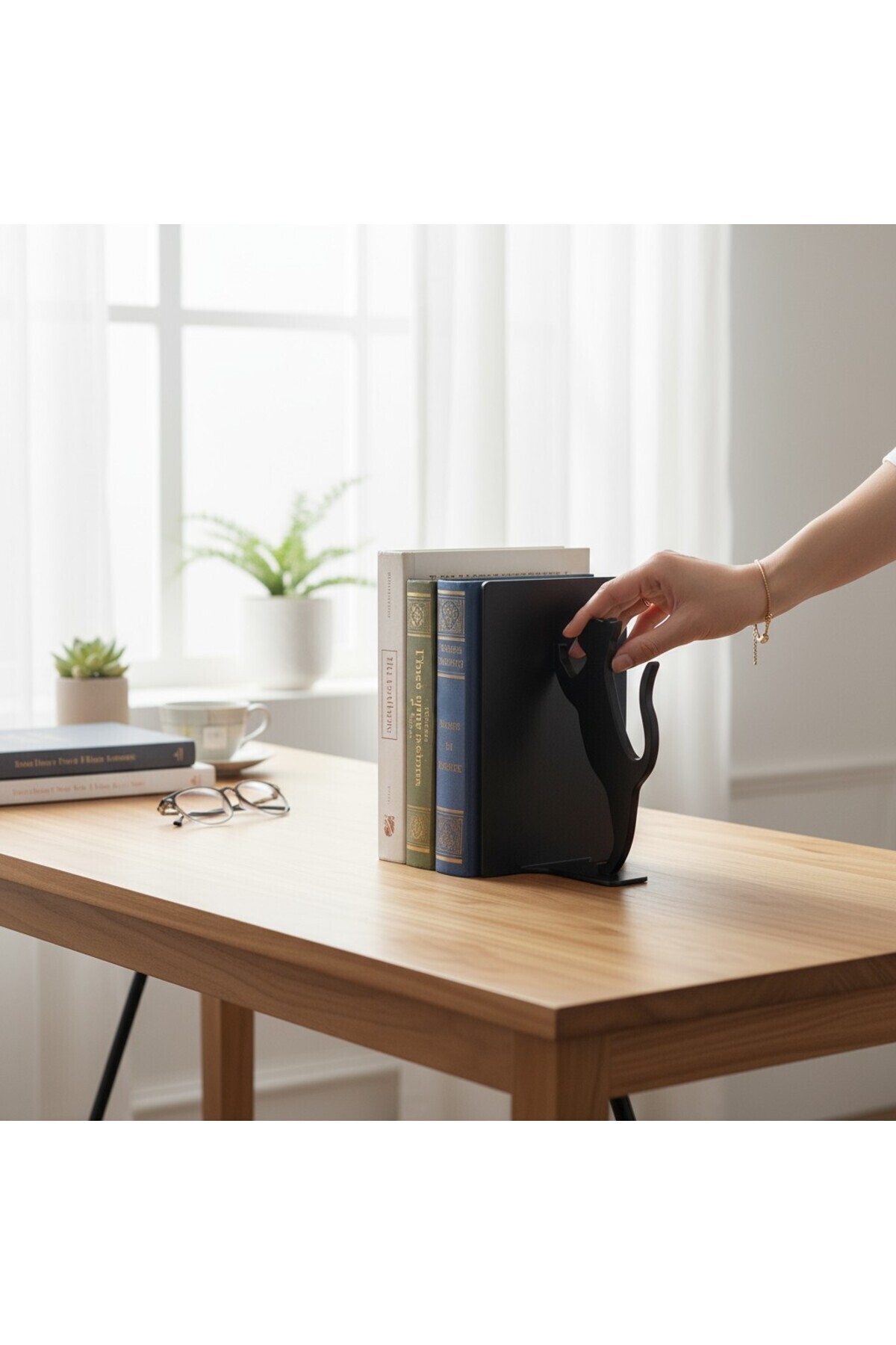 Kedi Figürlü Kitap Tutucu – Dekoratif Kitaplık Düzenleyici, Siyah Renkli Şık Stand Kedi Figürlü Kitap Tutucu – Dekoratif Kitaplık Düzenleyici, Siyah Renkli Şık Stand KediKitapTutucuSiyah تک سایز