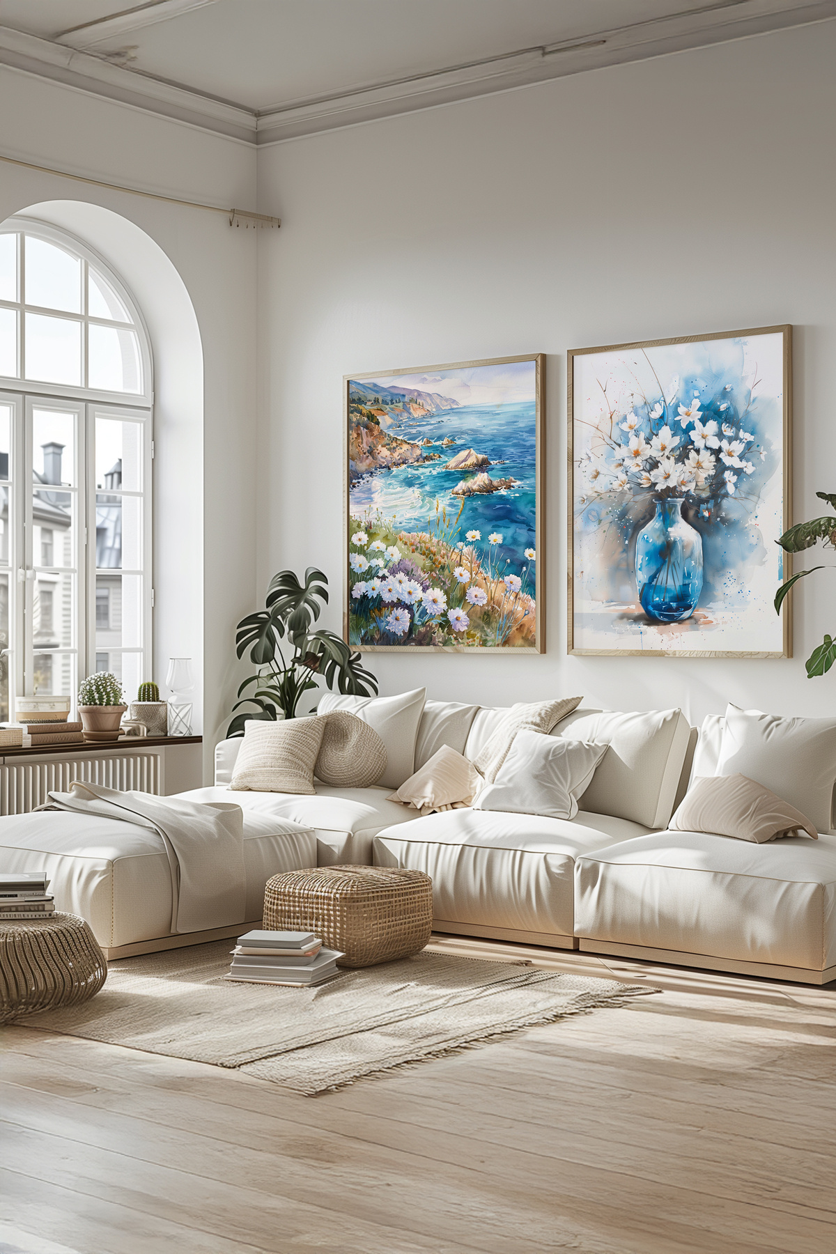 Suluboya efektli papatyalı tablo, ahşap çerçeveli papatyalı 2'li tablo seti Yuna138 Suluboya efektli papatyalı tablo, ahşap çerçeveli papatyalı 2'li tablo seti Yuna138 yuna138 50 x 70