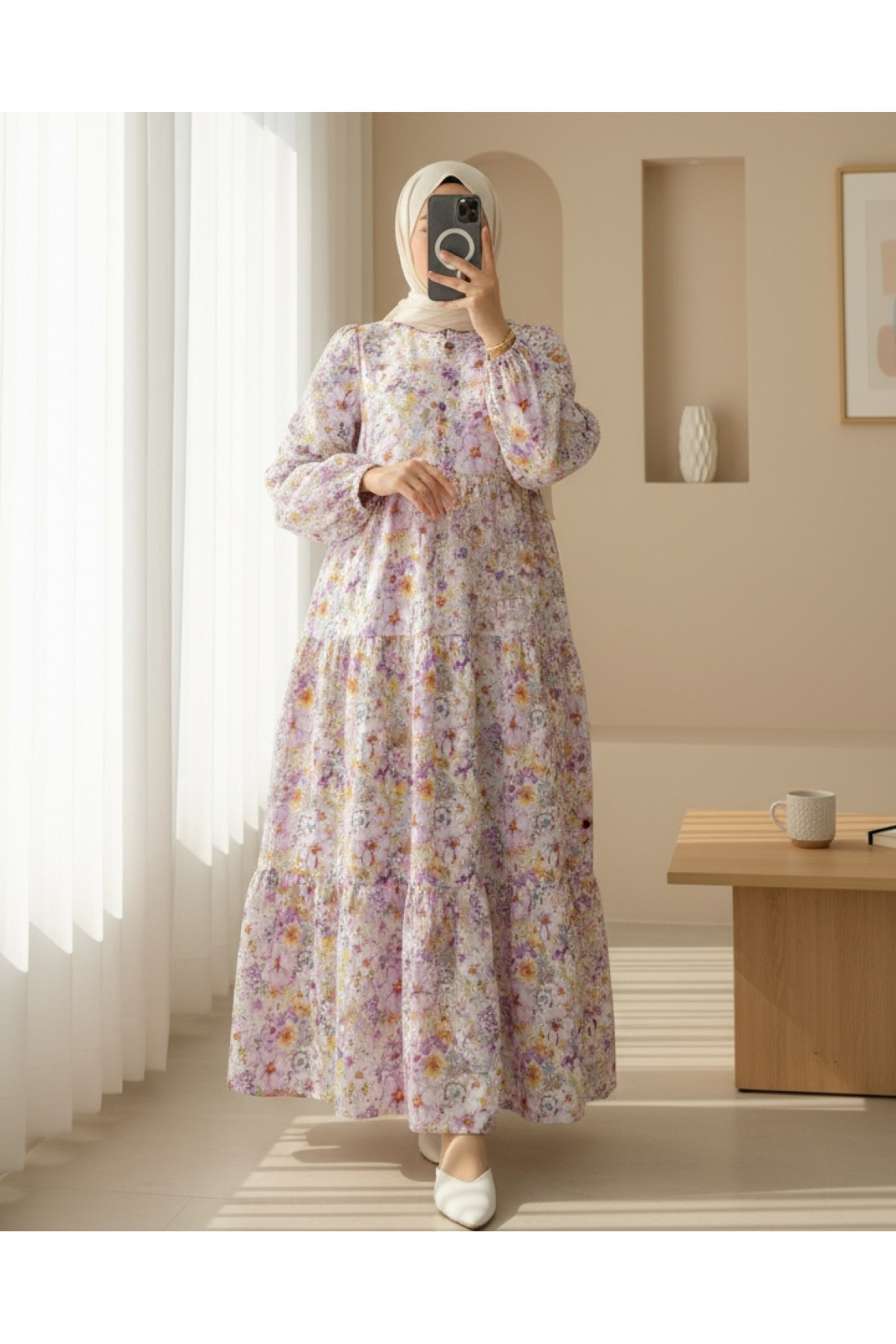 Karışık Çiçek Baskılı Yarım Düğmeli Parçalı Elbise -Turuncu Karışık Çiçek Baskılı Yarım Düğmeli Parçalı Elbise -Turuncu TY197-67864 48