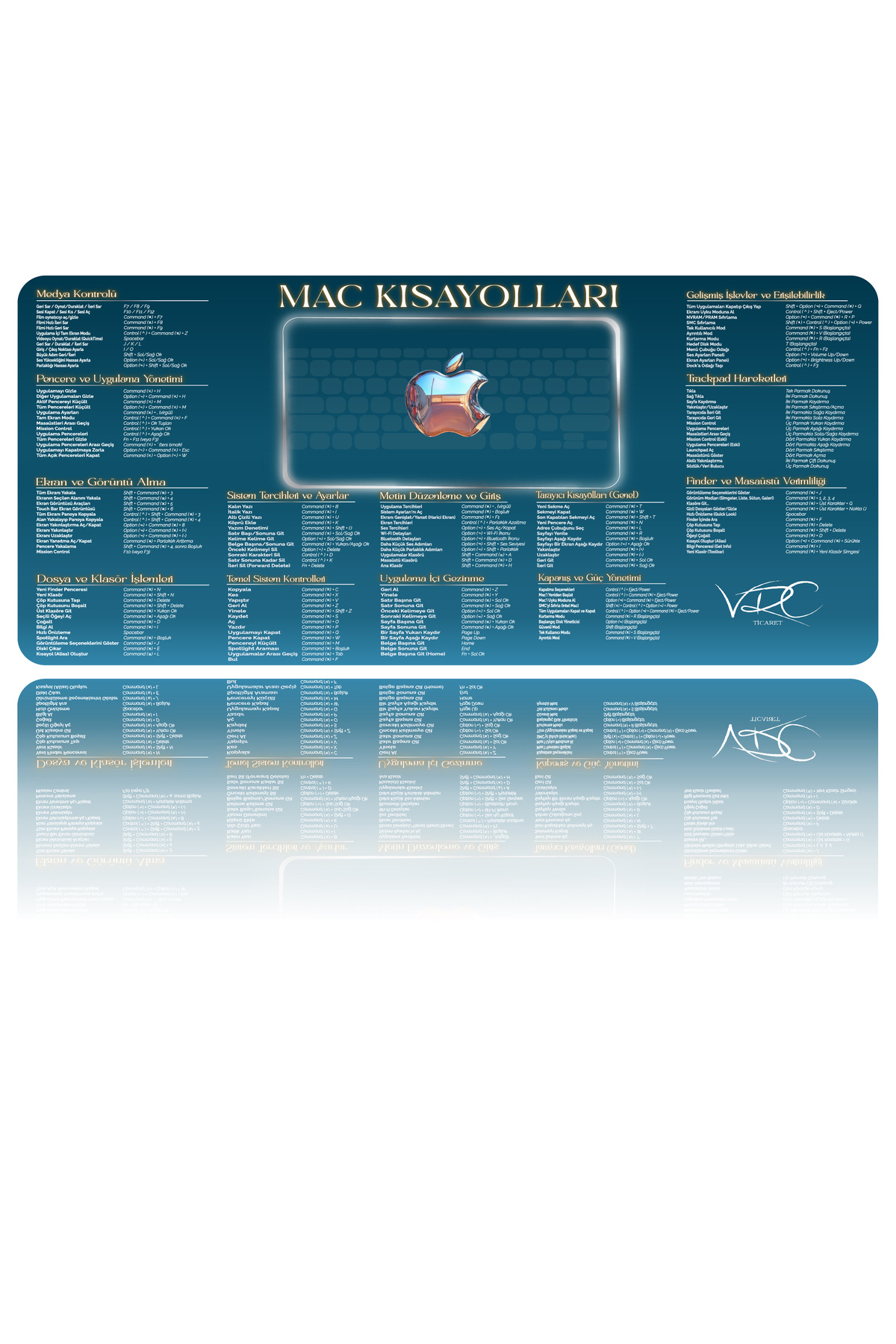 Mac Kısayol Mousepad Mavi 80x40Cm Kaymaz Kauçuk Taban Mac Kısayol Mousepad Mavi 80x40Cm Kaymaz Kauçuk Taban MACM تک سایز