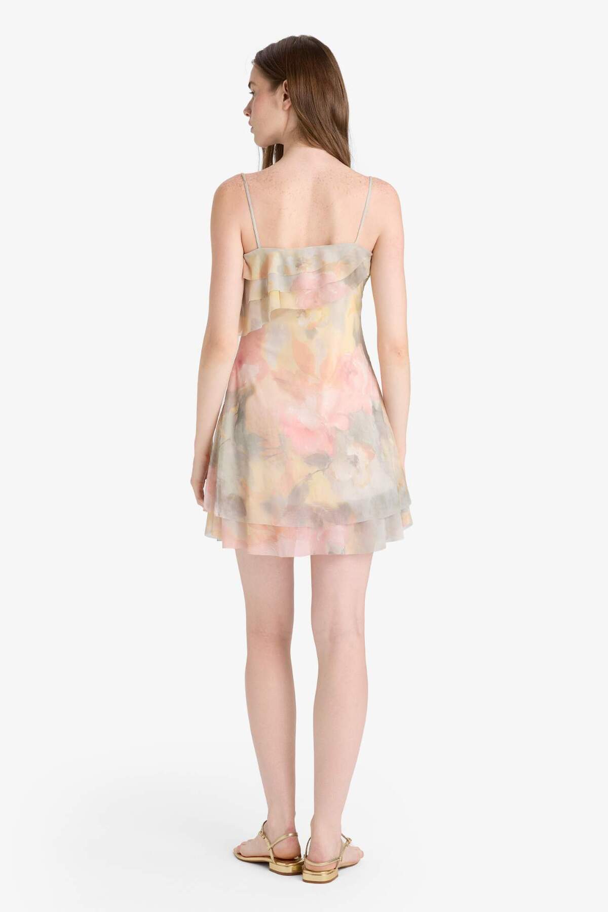 Fırfırlı Yaka Çiçek Desenli Tül Askılı Mini Elbise F6148AX25AU Fırfırlı Yaka Çiçek Desenli Tül Askılı Mini Elbise F6148AX25AU L