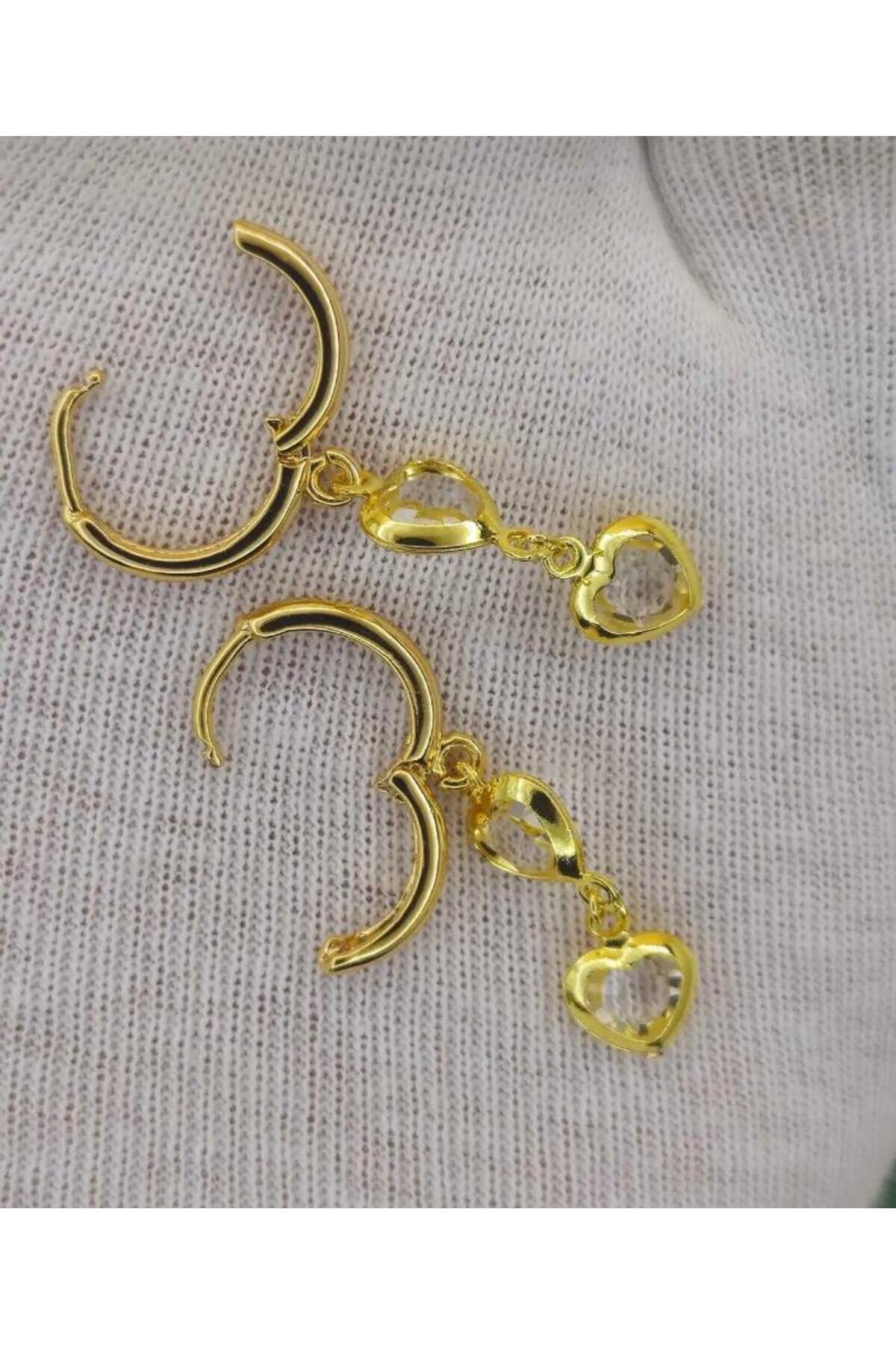 Çelik Gold Renk Kalpli Sallantılı Minimal Özel Tasarım Küpe Çelik Gold Renk Kalpli Sallantılı Minimal Özel Tasarım Küpe 56656 تک سایز