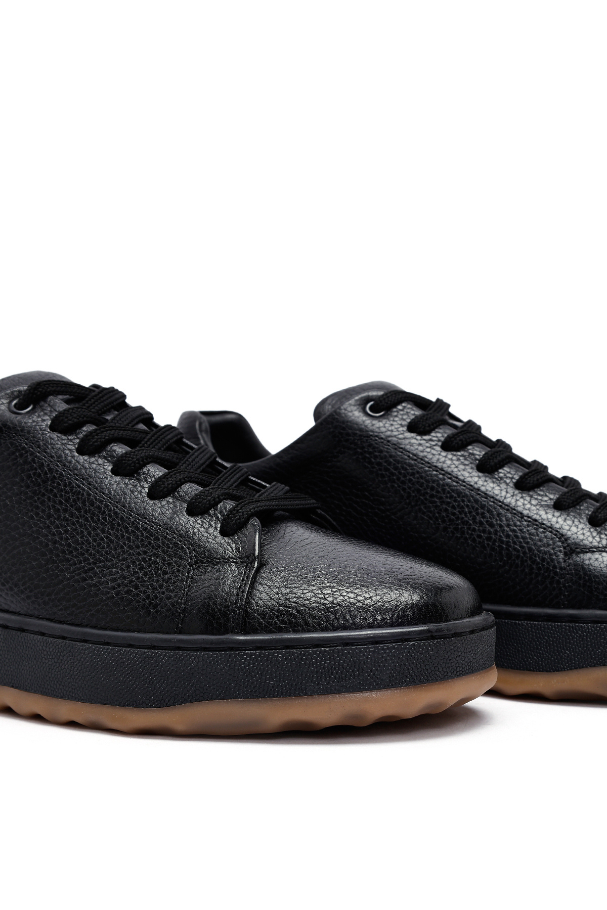 Erkek Siyah Bağcıklı Kalın Tabanlı Deri Sneaker,Kışlık Spor Ayakkabı 25WFD7602FT Erkek Siyah Bağcıklı Kalın Tabanlı Deri Sneaker,Kışlık Spor Ayakkabı 25WFD7602FT 45