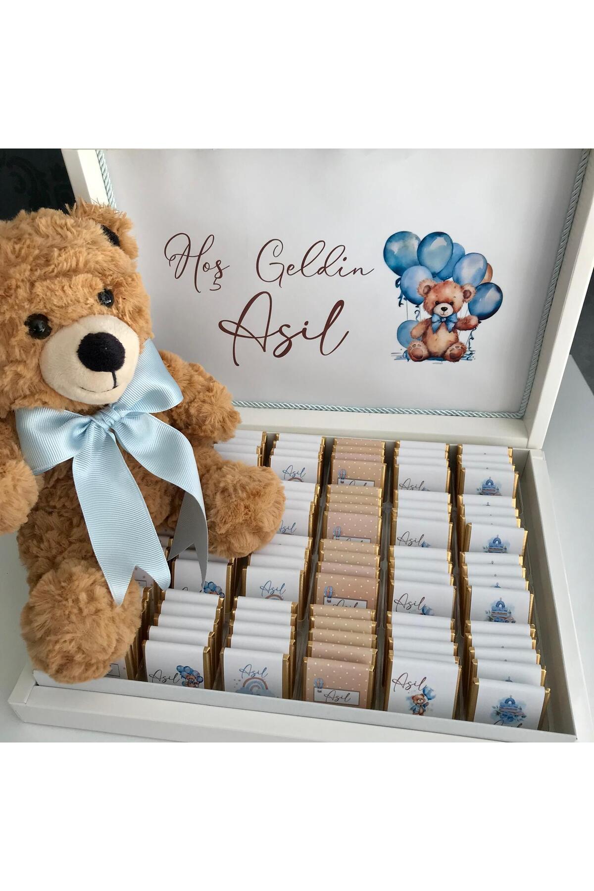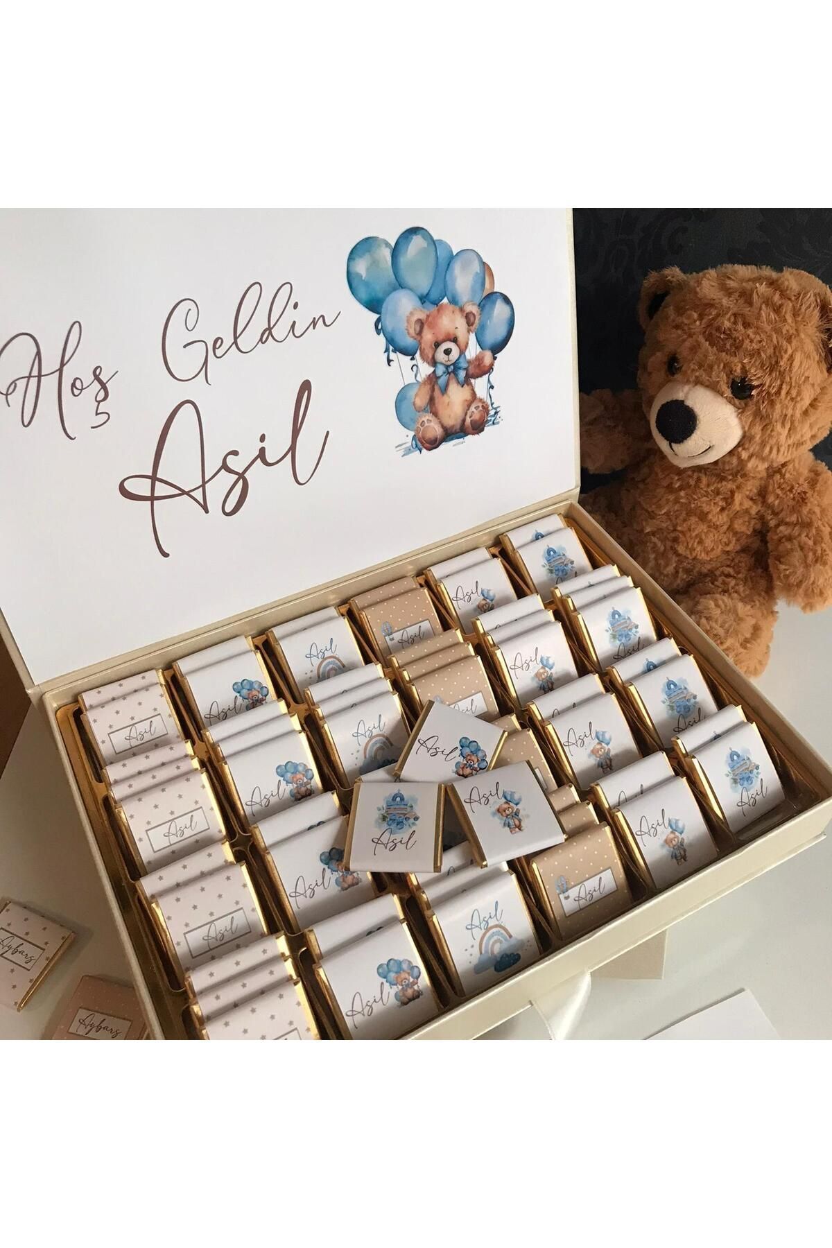 İsme Özel Lüks Karton Kutuda 56'lı Mavi Balonlu Erkek Bebek Çikolatası İsme Özel Lüks Karton Kutuda 56'lı Mavi Balonlu Erkek Bebek Çikolatası T97-3 تک سایز