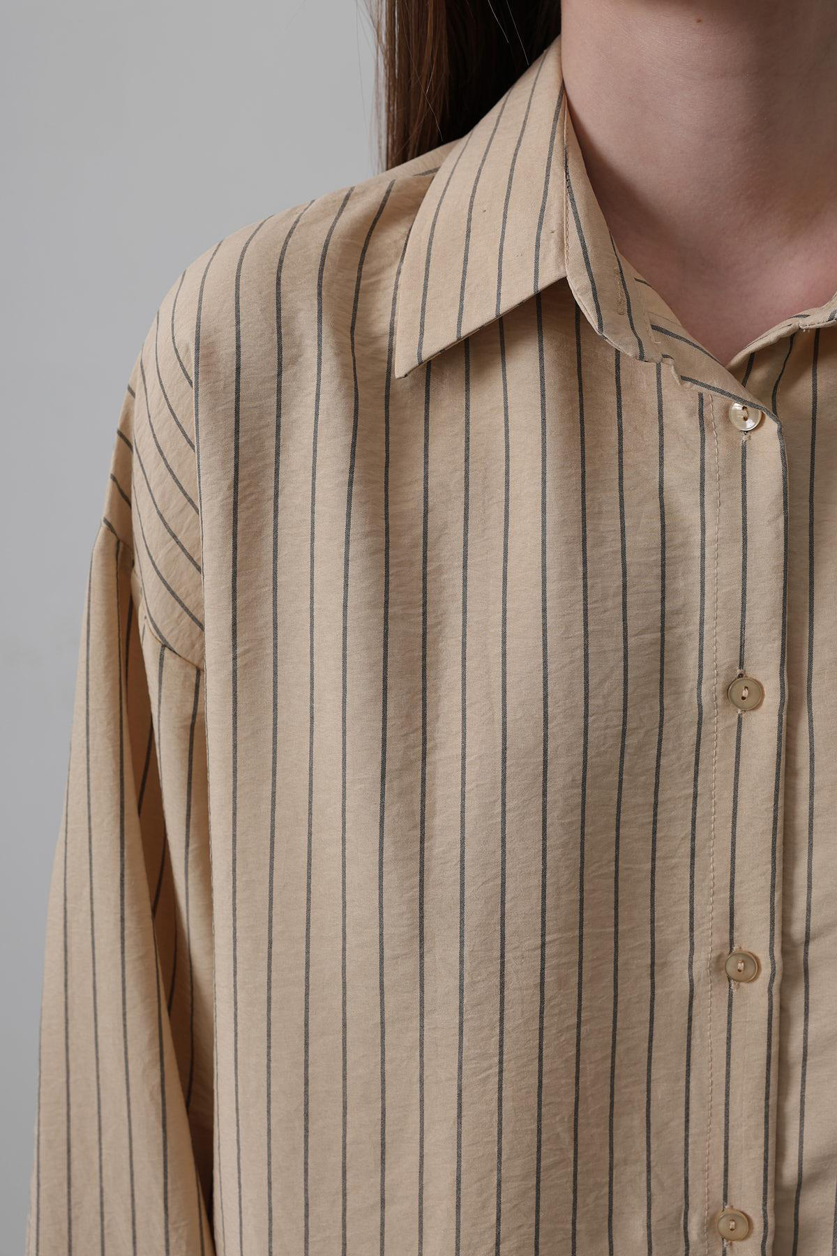 Kadın Taş Çizgili Tek Cepli Oversize Gömlek Vs00475 Kadın Taş Çizgili Tek Cepli Oversize Gömlek Vs00475 VS00475 L