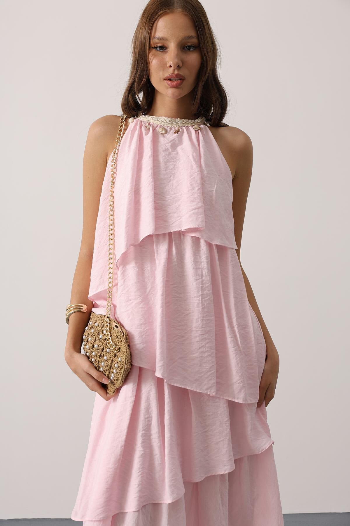 Kadın Yaka Detaylı Kat Kat Elbise Vs00629 Kadın Yaka Detaylı Kat Kat Elbise Vs00629 VS00629 L
