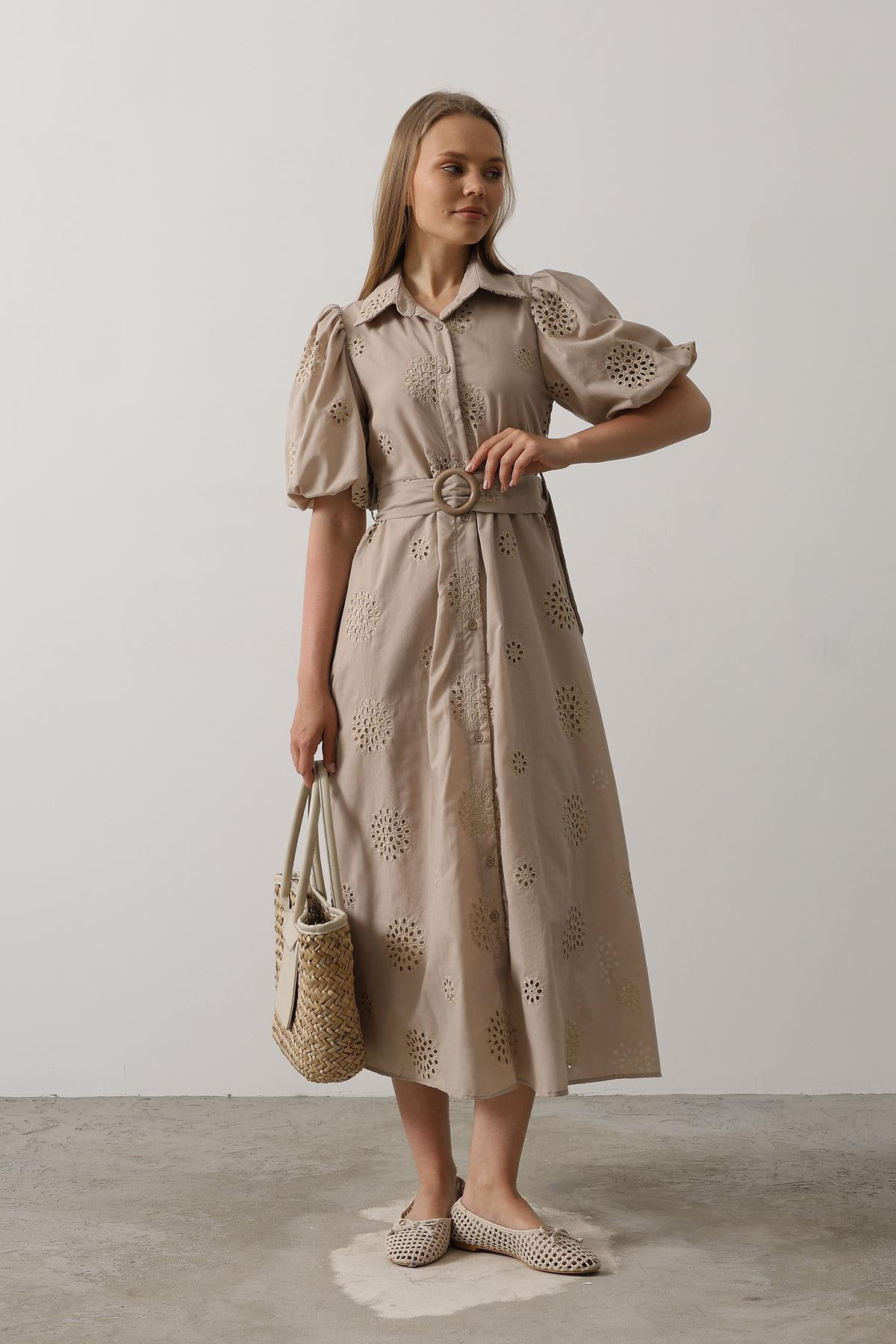 Kadın Krem Önü Yarım Düğmeli Uzun Kol Kemerli Elbise Vs00521 Kadın Krem Önü Yarım Düğmeli Uzun Kol Kemerli Elbise Vs00521 VS00521 L