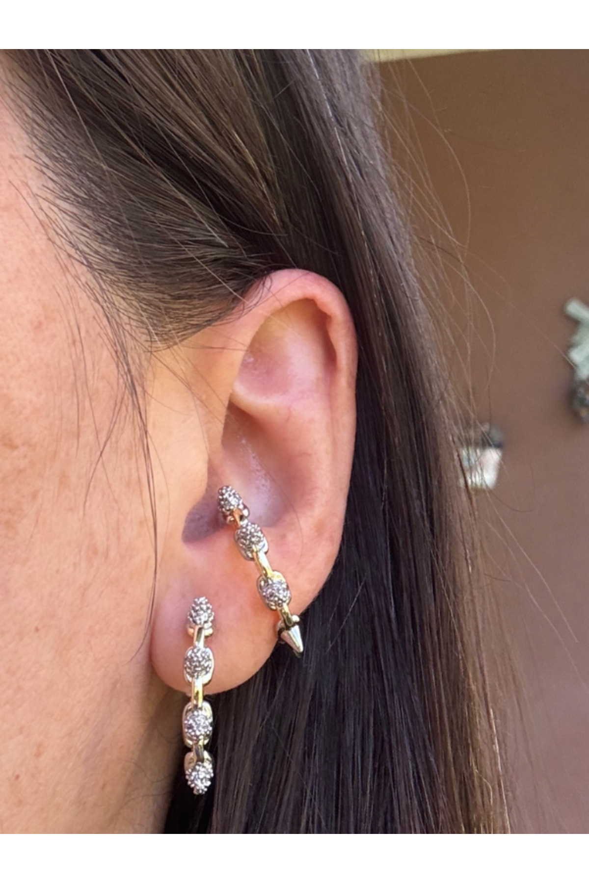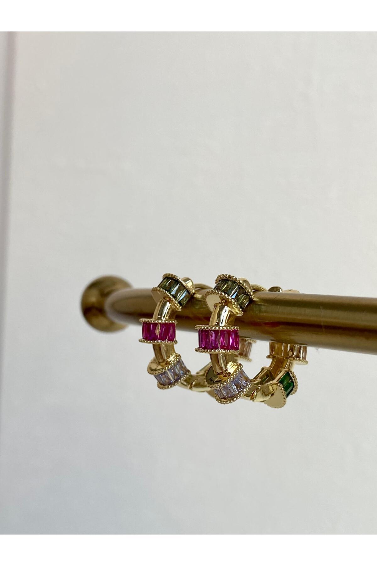 Çift Renkli Çivili Halka Küpe Çift Renkli Çivili Halka Küpe 25TKHLKCIVIG01 تک سایز