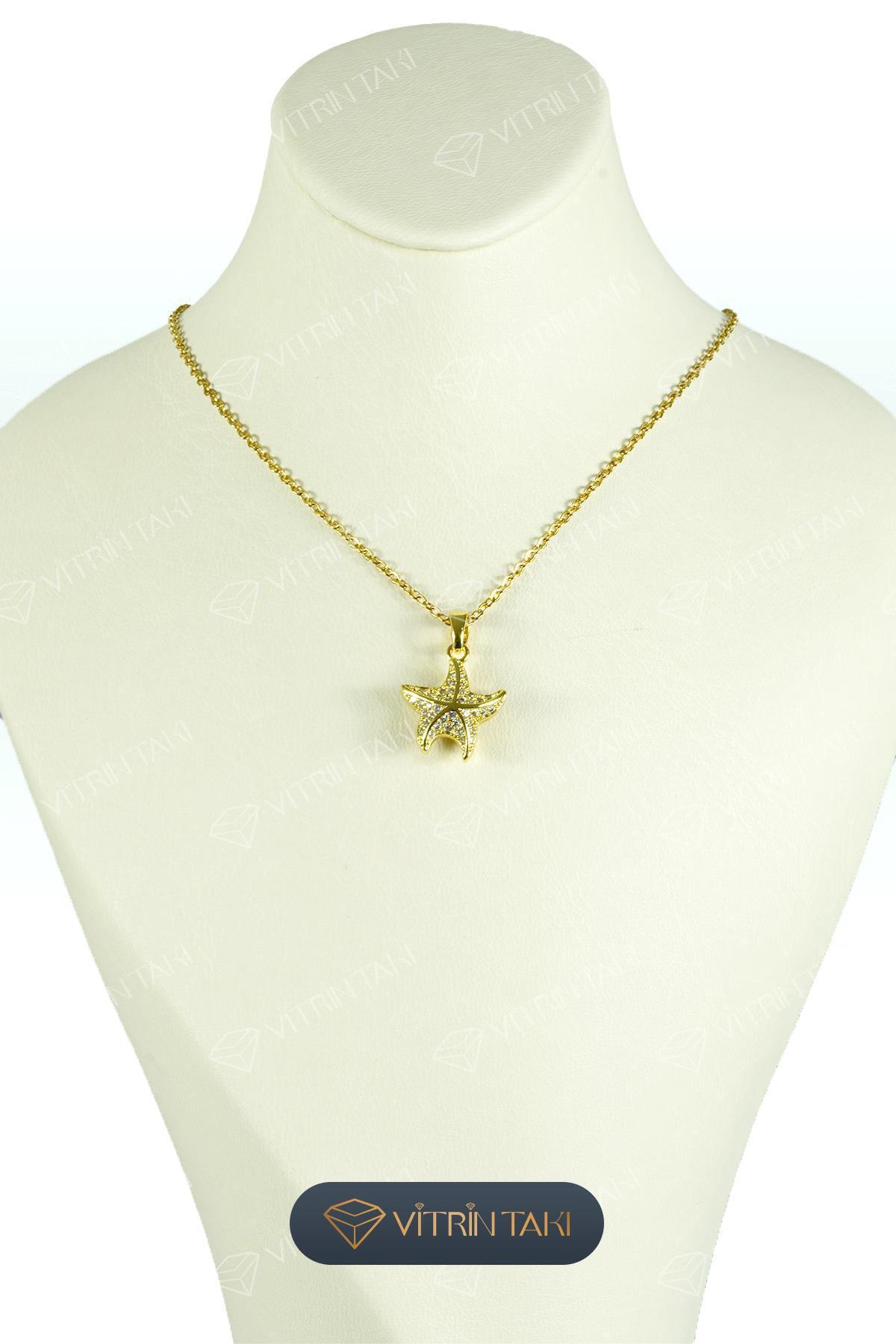 Deniz Yıldızı Figürlü Taş Detaylı Altın Renk Kolye Deniz Yıldızı Figürlü Taş Detaylı Altın Renk Kolye KL066 50 cm