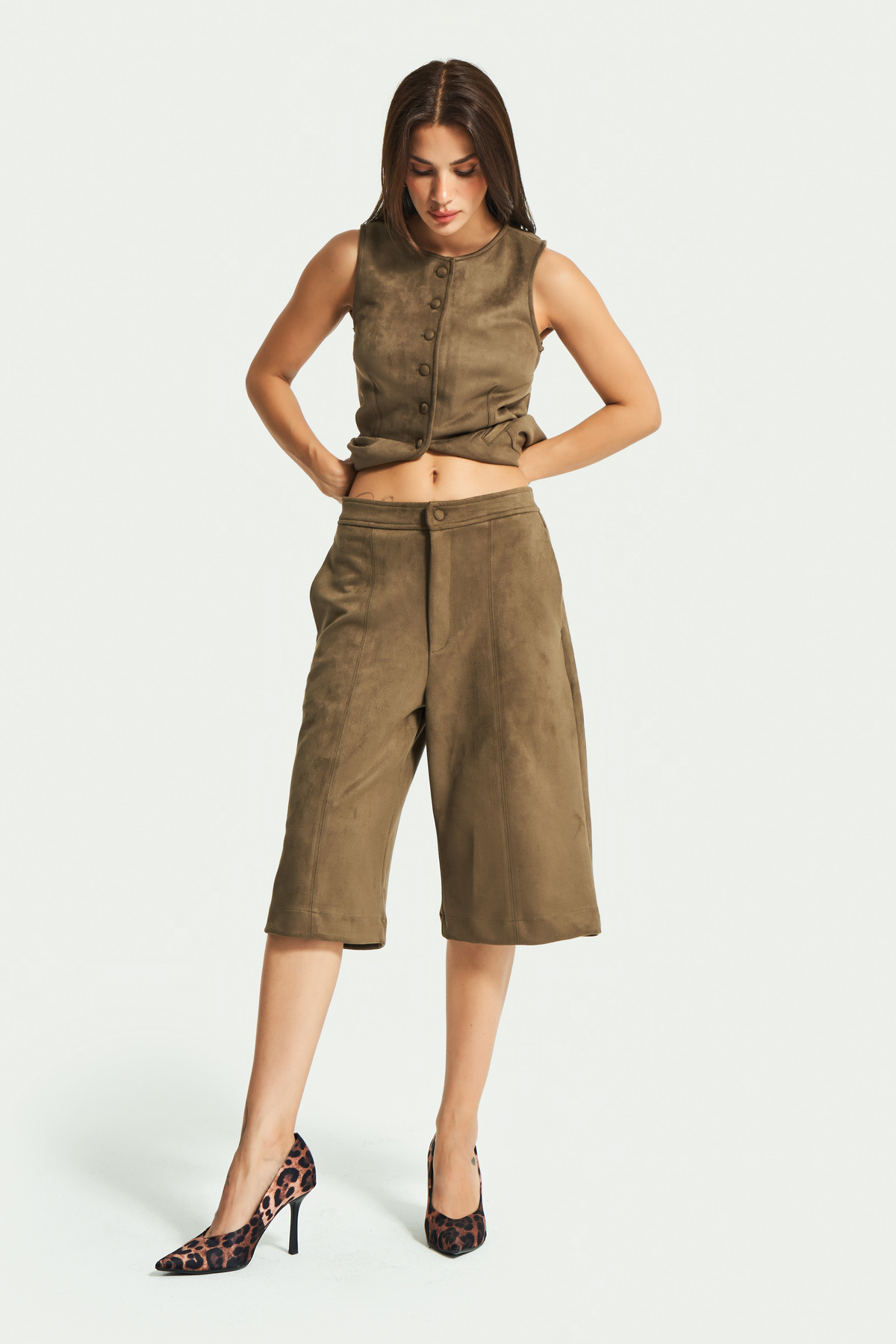 Kadın Haki Renk w5-15 Maxi Boy Esnek Yumuşak Süet Kumaş Bermuda Kadın Haki Renk w5-15 Maxi Boy Esnek Yumuşak Süet Kumaş Bermuda ITSBASIC 4210 42
