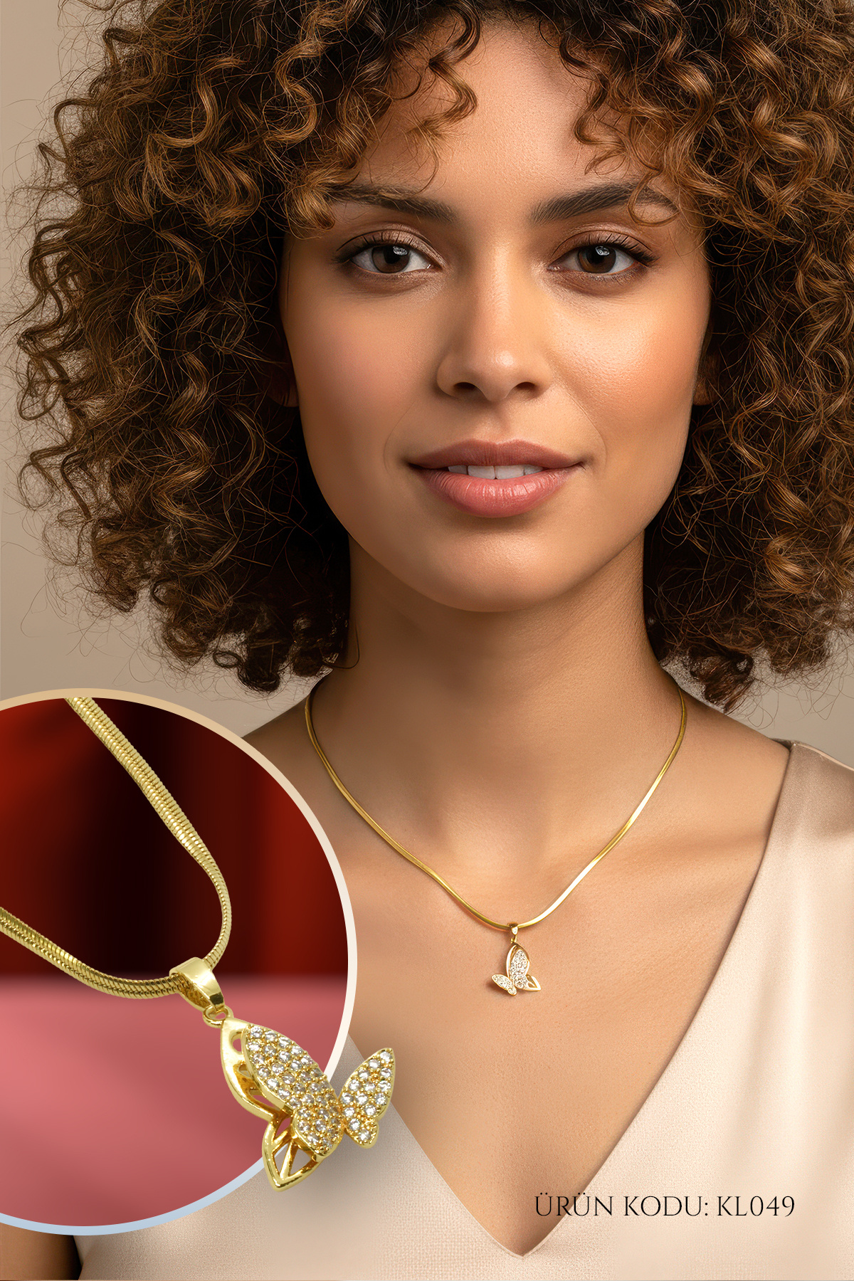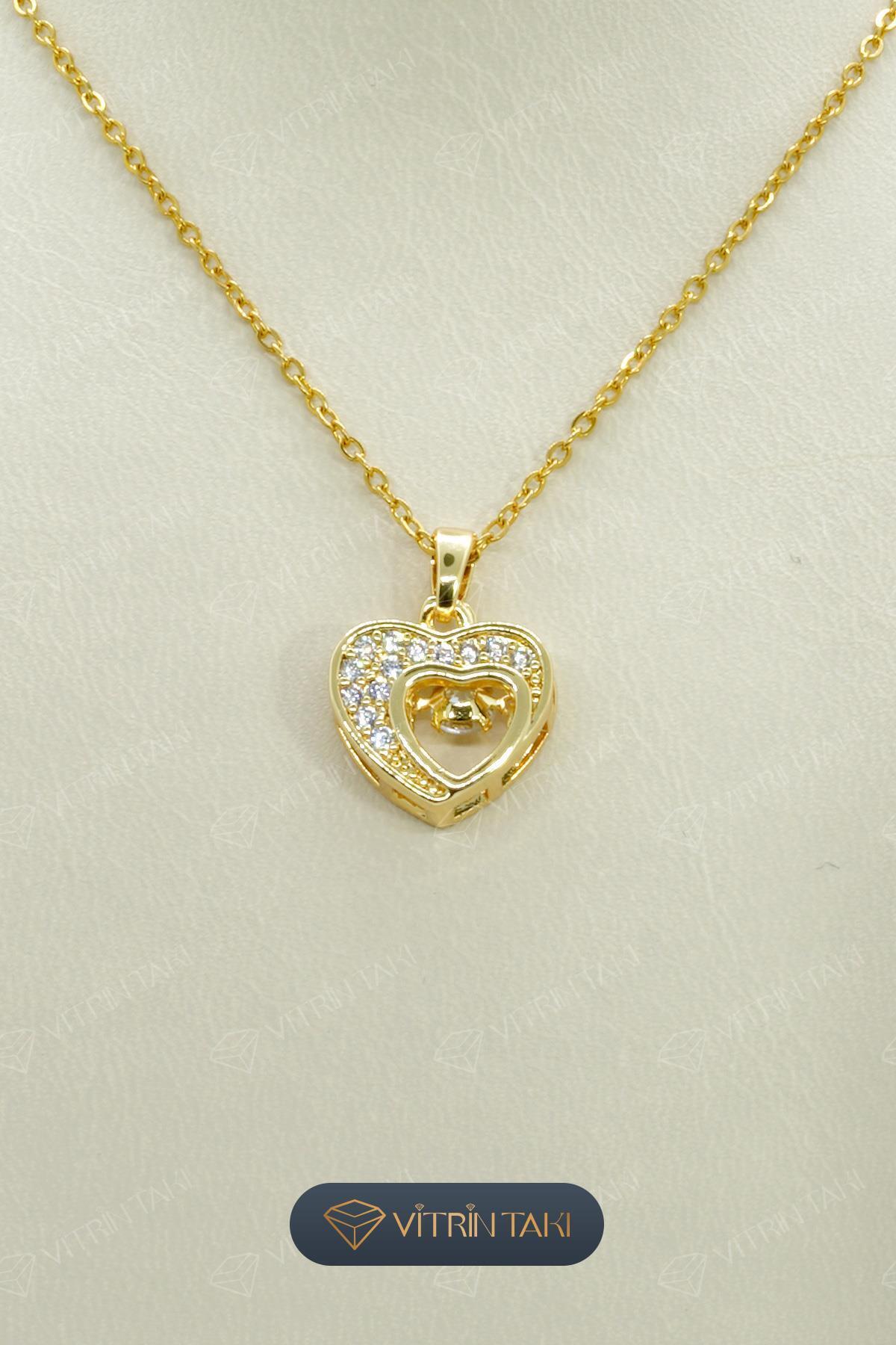 Kalp Figürlü Taş Detaylı Altın Renk Kolye Kalp Figürlü Taş Detaylı Altın Renk Kolye KL116 50 cm