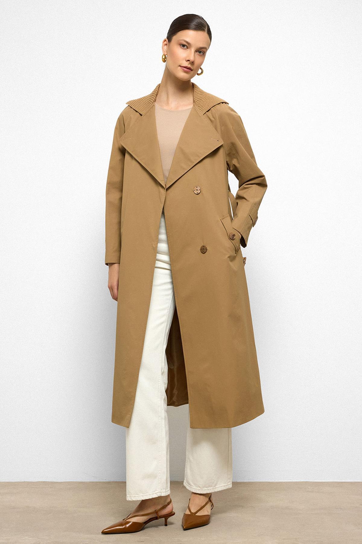 Ribana Yakalı Reglan Kol Su İtici Özellikli Trençkot KAMEL 6758 Ribana Yakalı Reglan Kol Su İtici Özellikli Trençkot KAMEL 6758 42