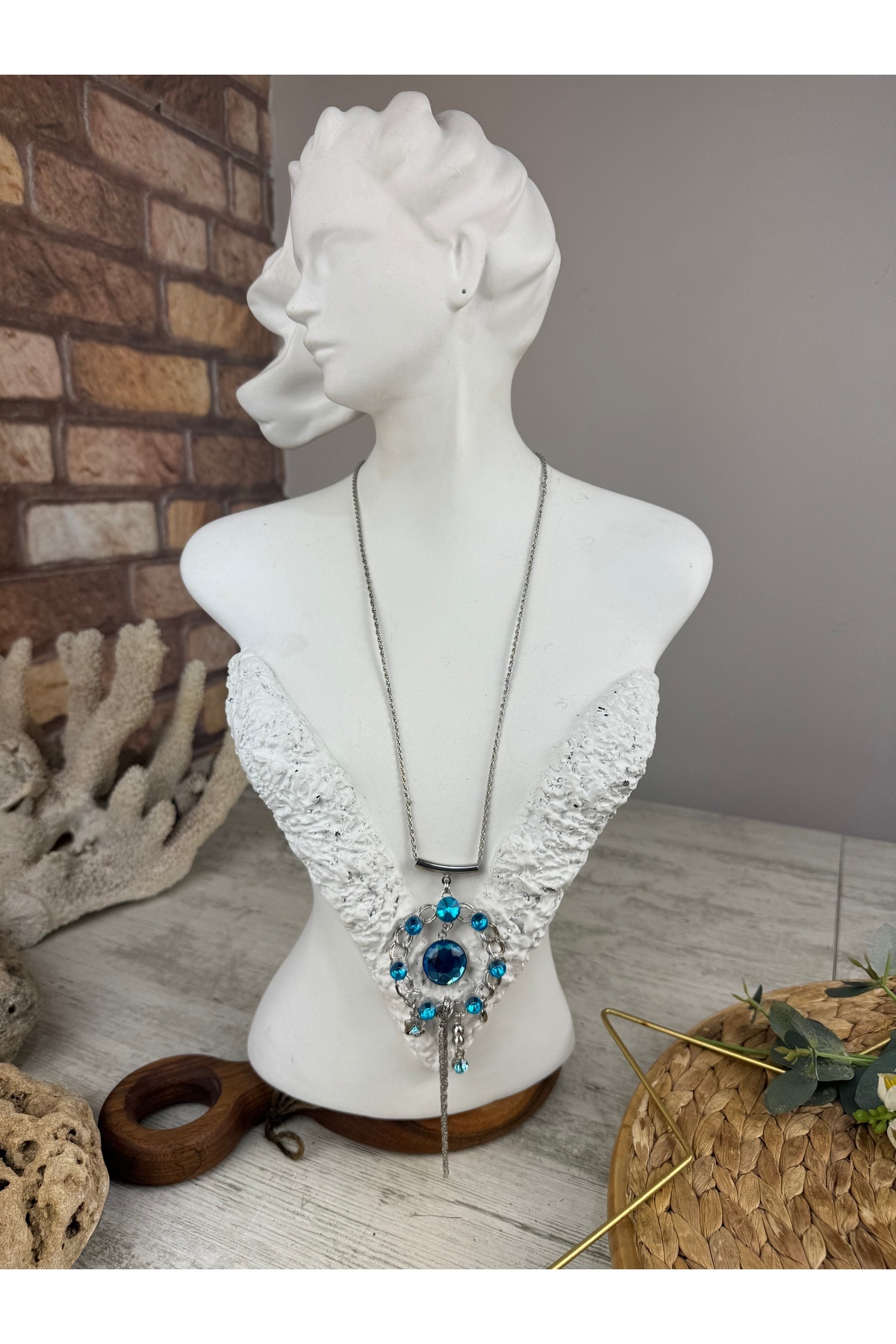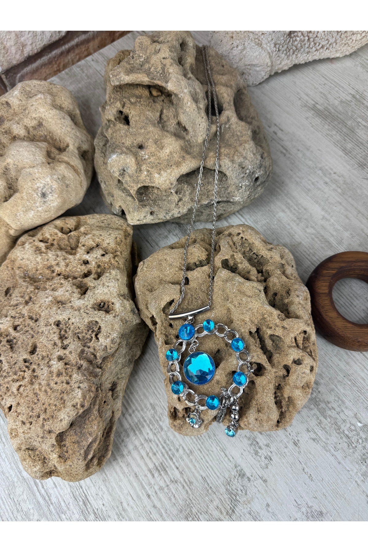 Gümüş zincir kahve ve mavi taşlı kolye Gümüş zincir kahve ve mavi taşlı kolye süs52 M