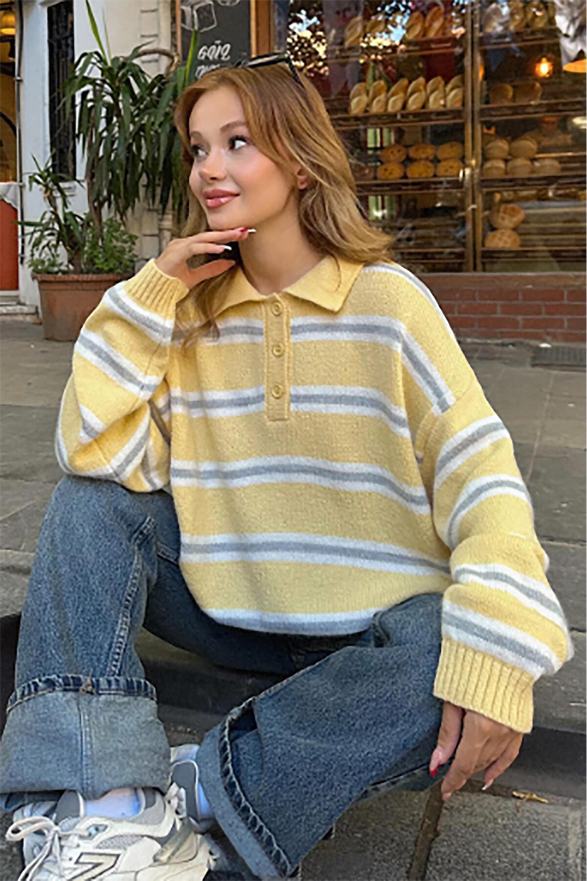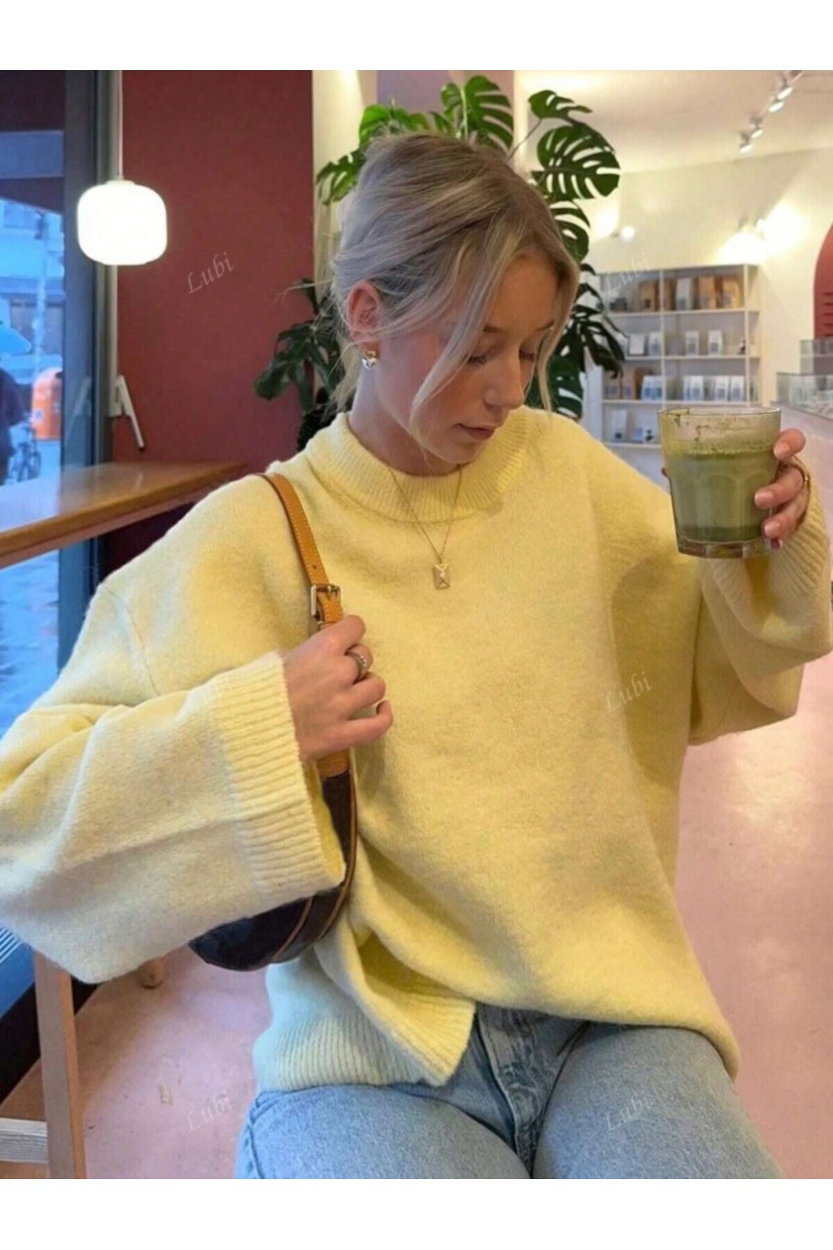 Limon Sarı Bisiklet Yaka Oversize Triko Kazak Limon Sarı Bisiklet Yaka Oversize Triko Kazak 8373628292636 Standart