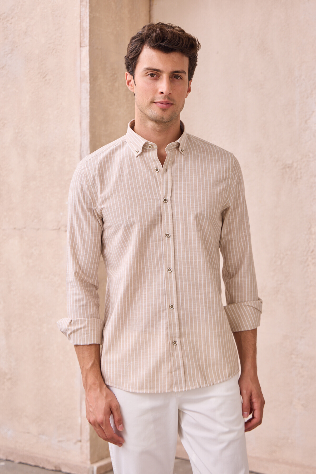 Erkek Çizgili Pamuk Keten Modern Slim Fit Gömlek Erkek Çizgili Pamuk Keten Modern Slim Fit Gömlek IÇ-7854 2XL