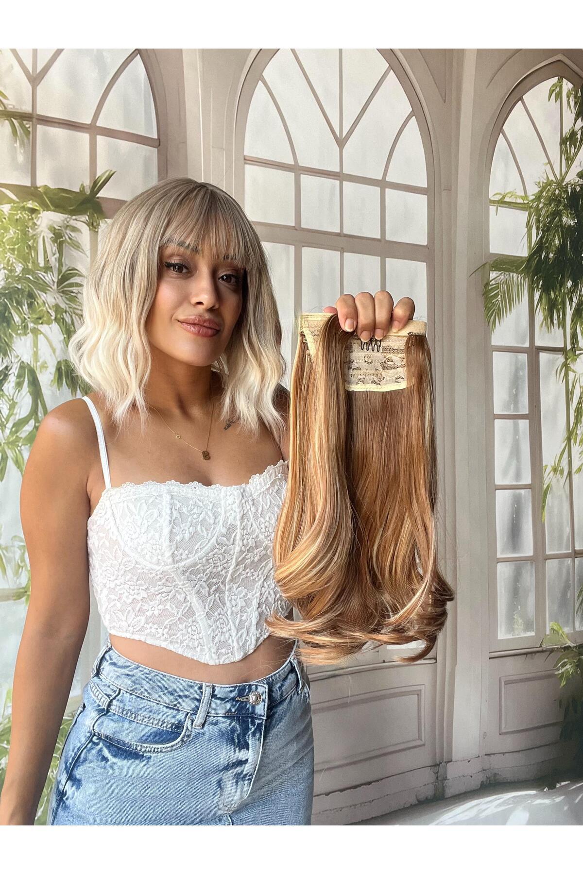 Bağcıklı At Kuyruğu Gerçek Saç Dokulu- Yandan dolamalı Takması çok kolay Bağcıklı At Kuyruğu Gerçek Saç Dokulu- Yandan dolamalı Takması çok kolay bat تک سایز