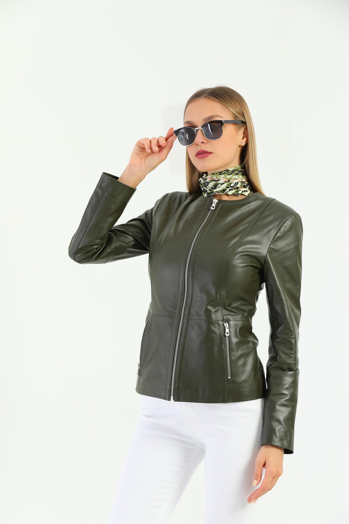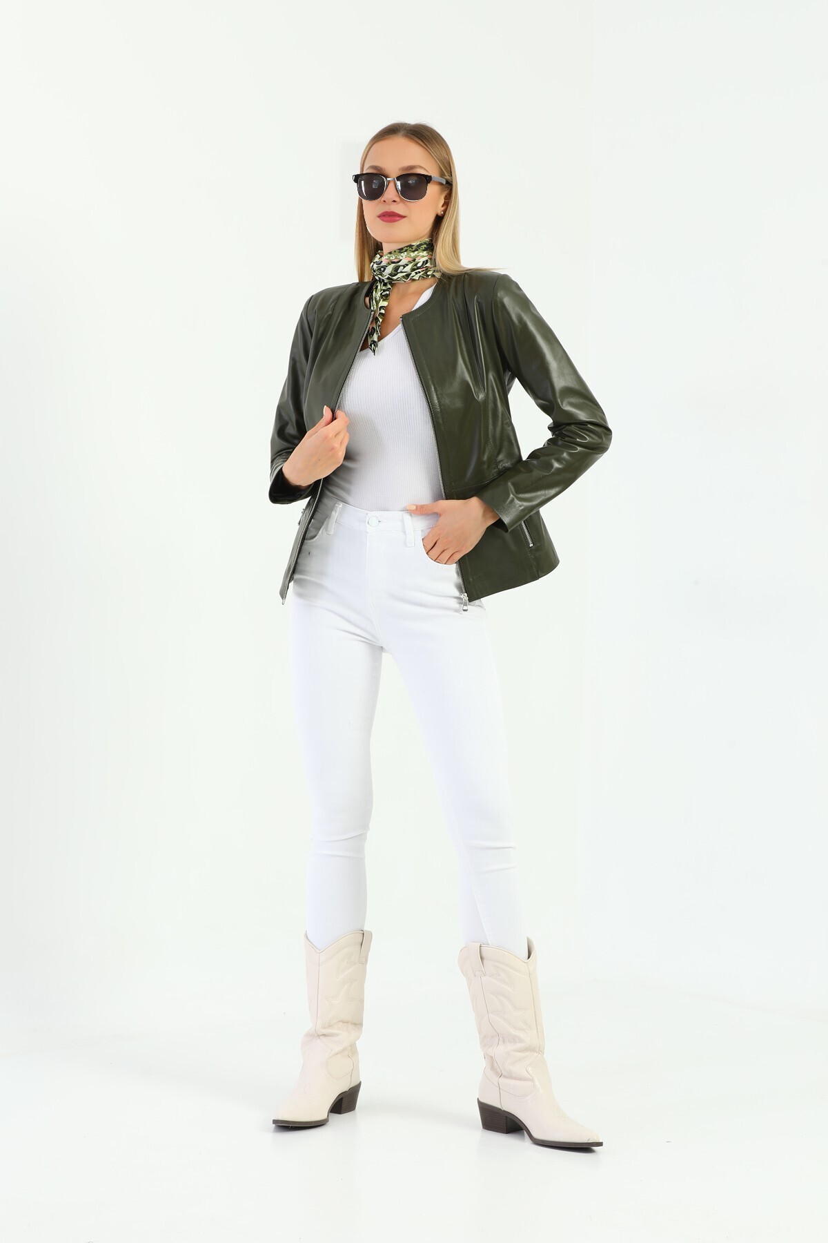 KADIN FERMUARLI DERİ CEKET KADIN FERMUARLI DERİ CEKET L046 2XL