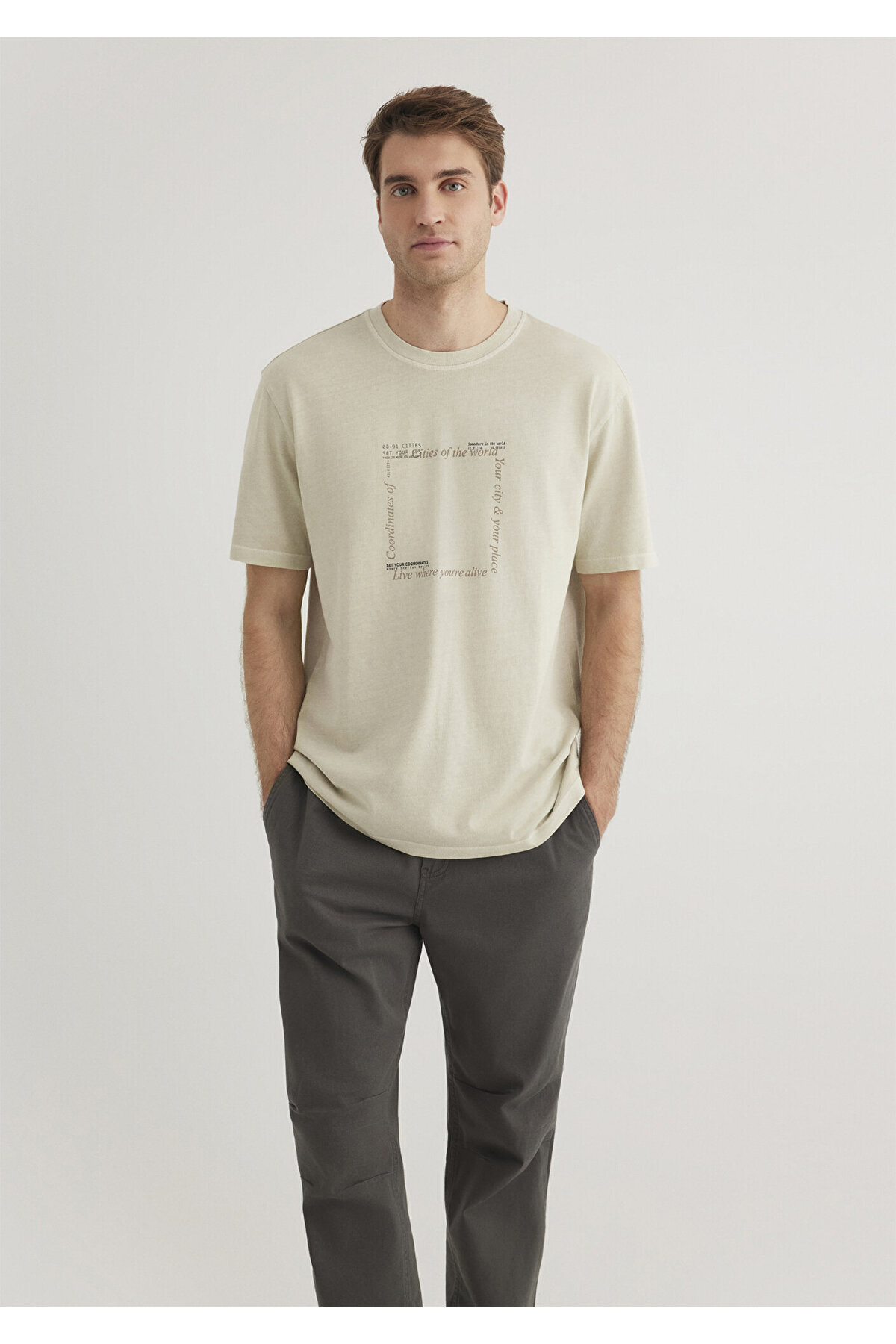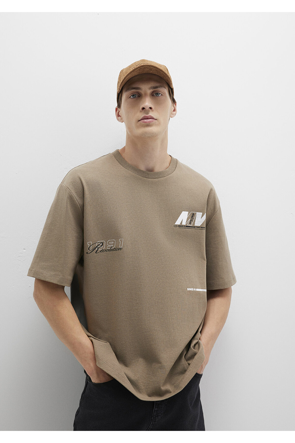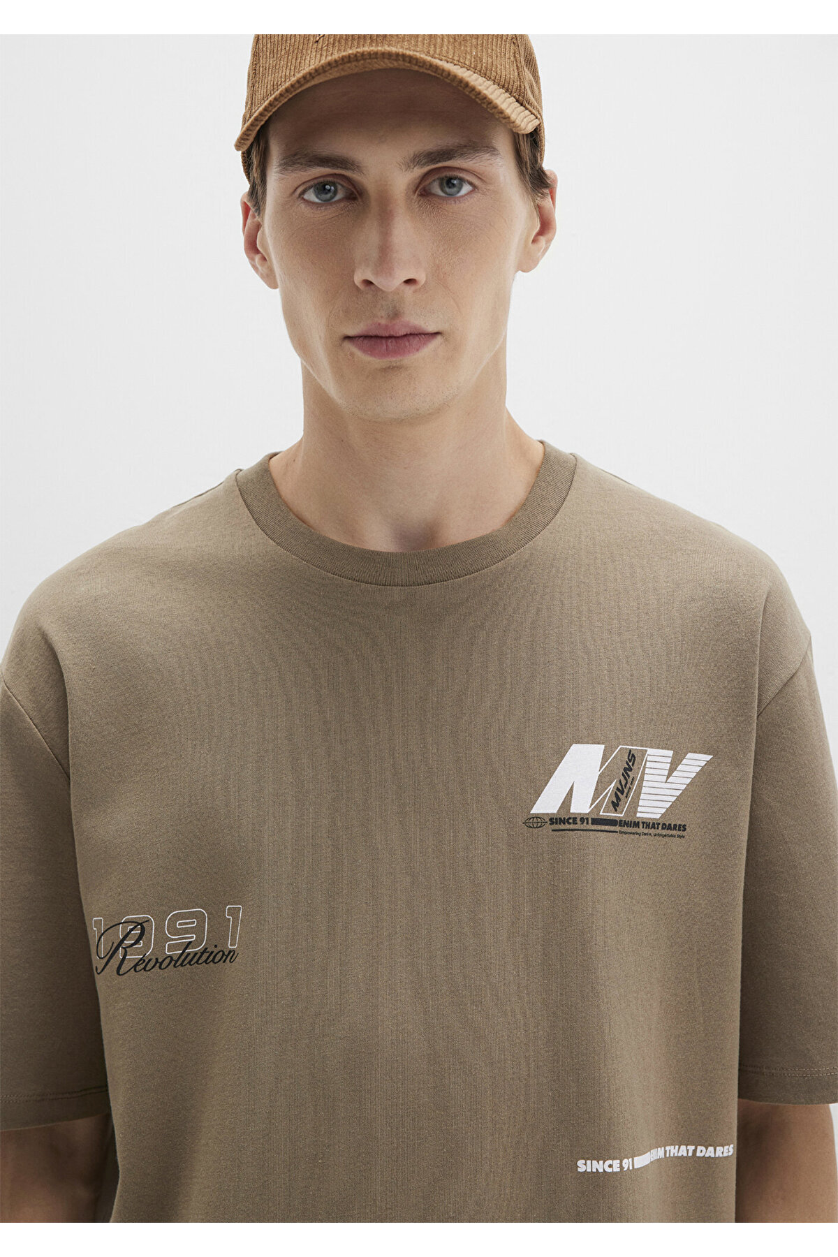 Baskılı Haki Tişört Relaxed Fit / Rahat Kesim 0612912-70355 Baskılı Haki Tişört Relaxed Fit / Rahat Kesim 0612912-70355 2XL