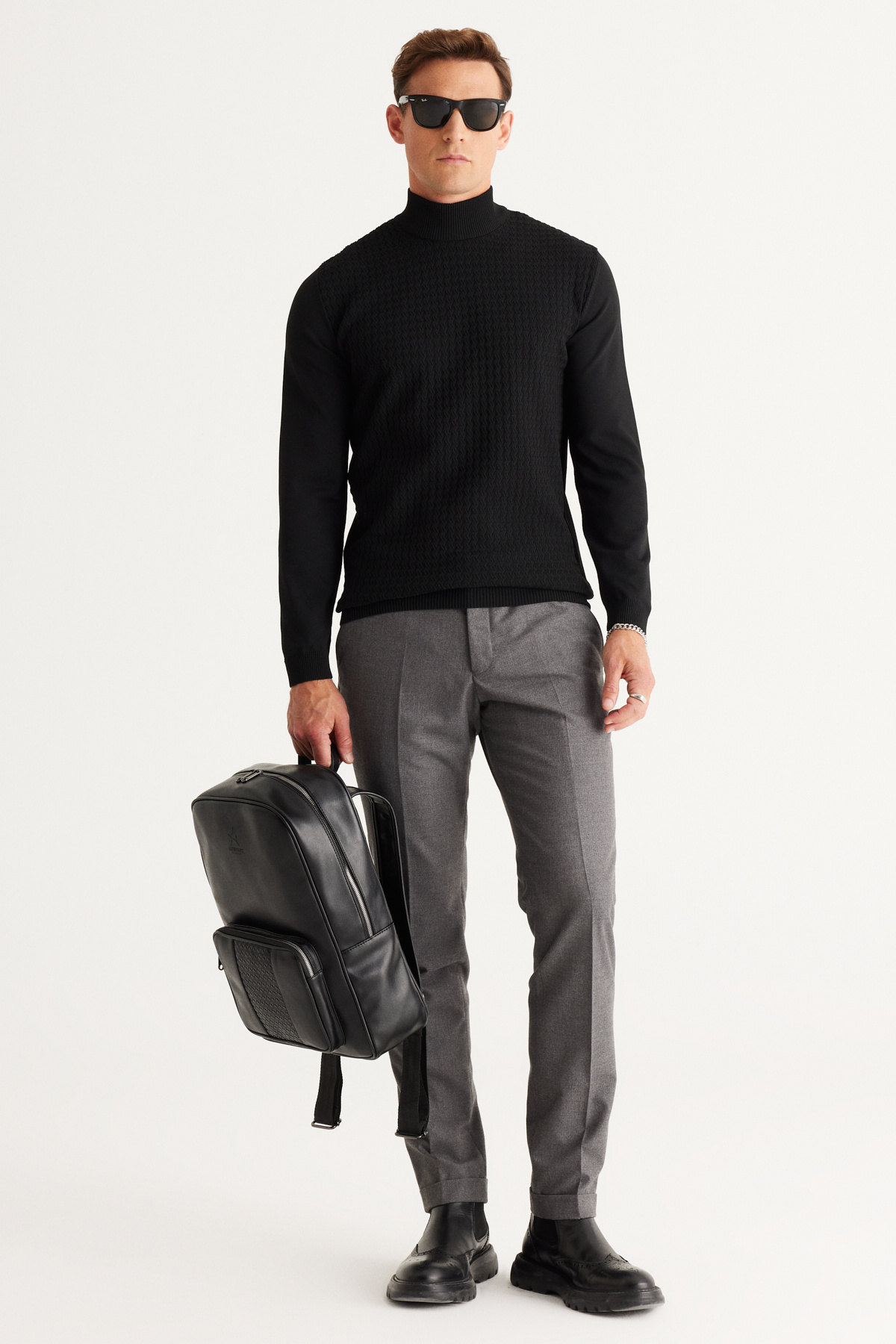 Erkek Siyah Standart Fit Normal Kesim Yarım Balıkçı Yaka Jakarlı Triko Kazak Erkek Siyah Standart Fit Normal Kesim Yarım Balıkçı Yaka Jakarlı Triko Kazak TY4924100019 2XL