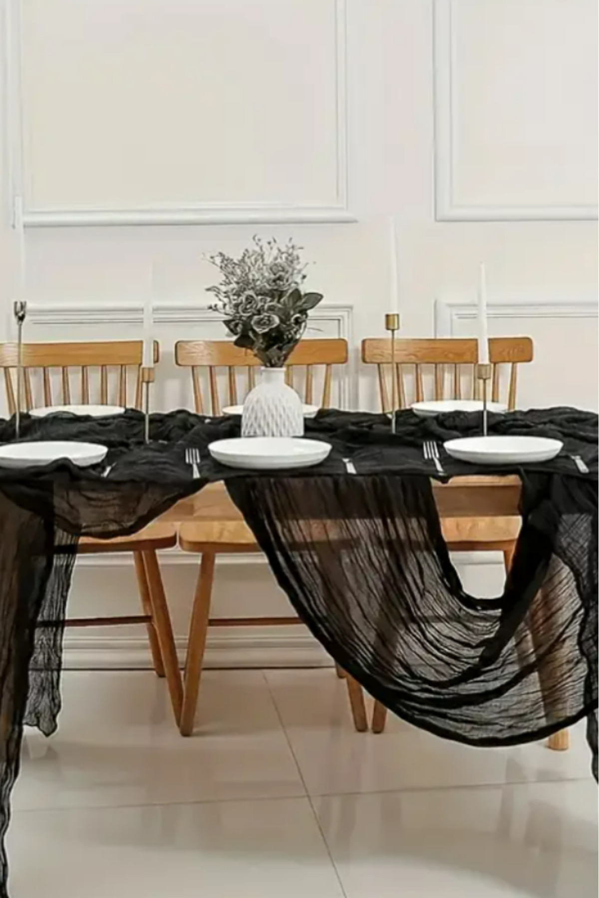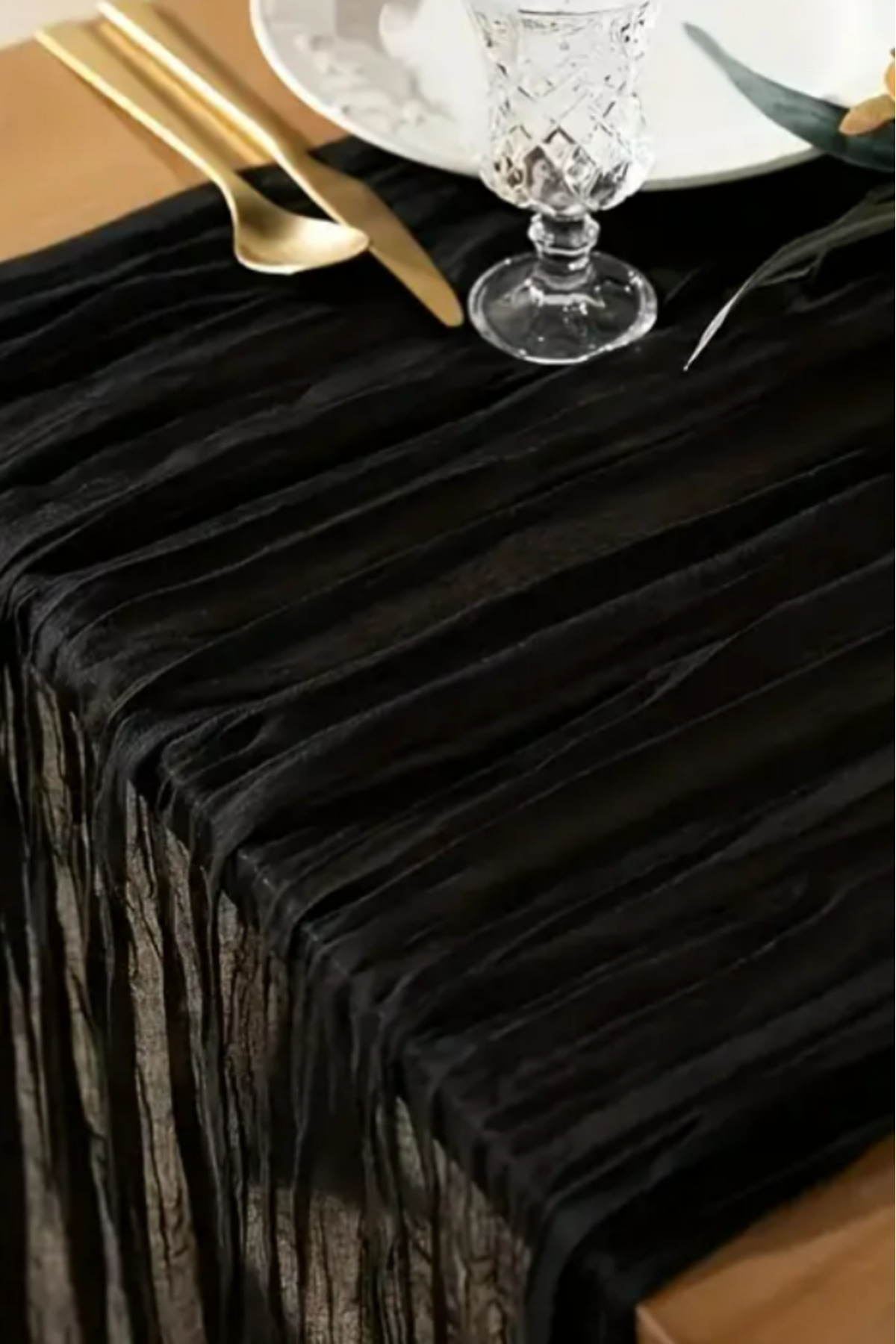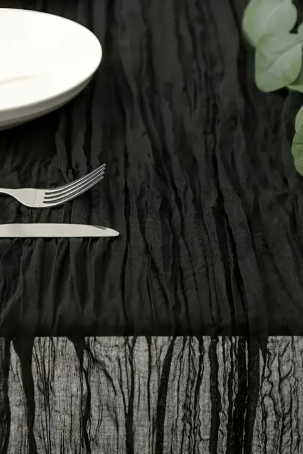 Siyah Şifon Dökümlü, Kırışık Dokulu Dekoratif Kumaş Bohem Masa Runner | 180x80 cm Siyah Şifon Dökümlü, Kırışık Dokulu Dekoratif Kumaş Bohem Masa Runner | 180x80 cm HBGM0039 180 x 80