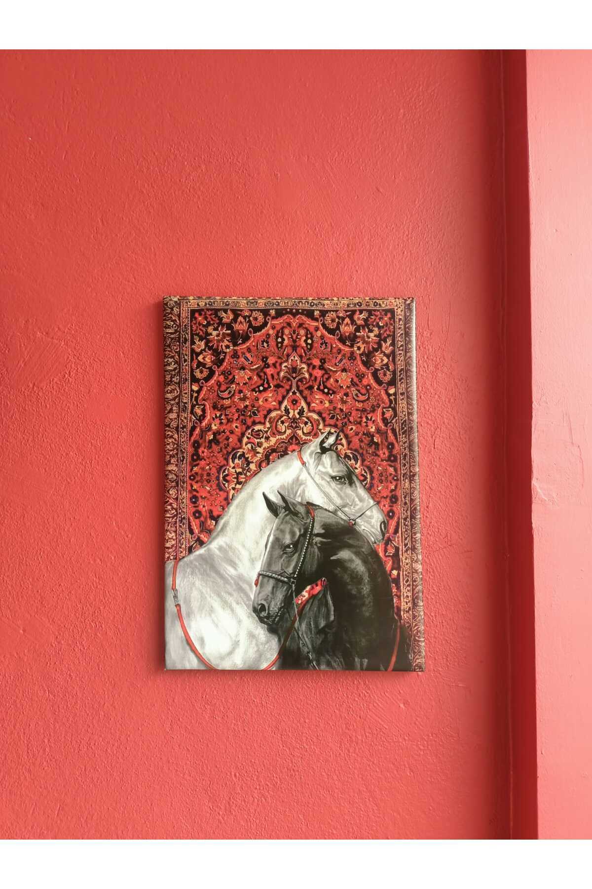 Türk Halısı Üzerinde At İkilisi Kanvas Tablo Türk Halısı Üzerinde At İkilisi Kanvas Tablo hal1 40 x 60