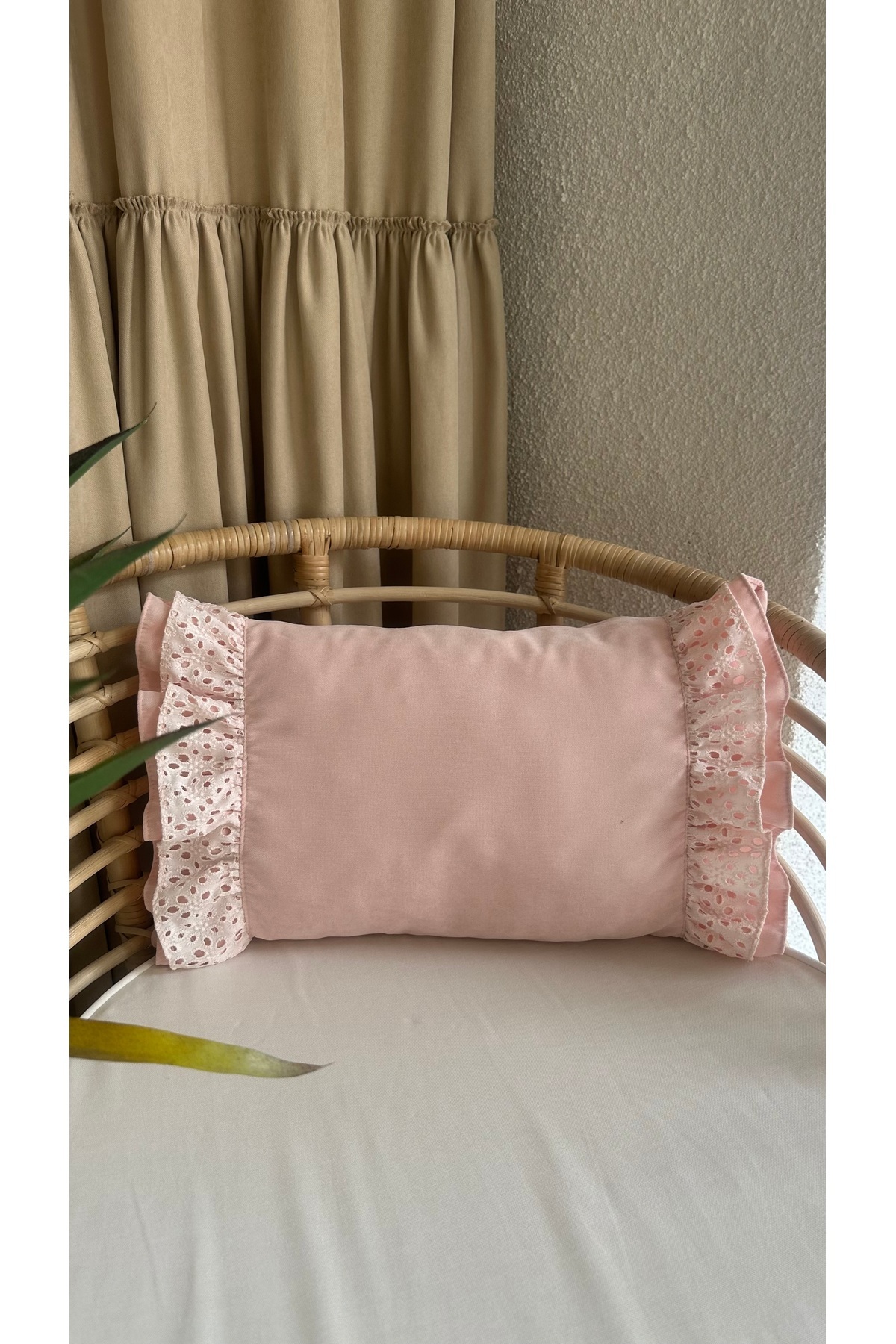 Toz Pembe Dantel Detaylı Dekoratif Kırlent Kılııf Toz Pembe Dantel Detaylı Dekoratif Kırlent Kılııf 456 50 x 30