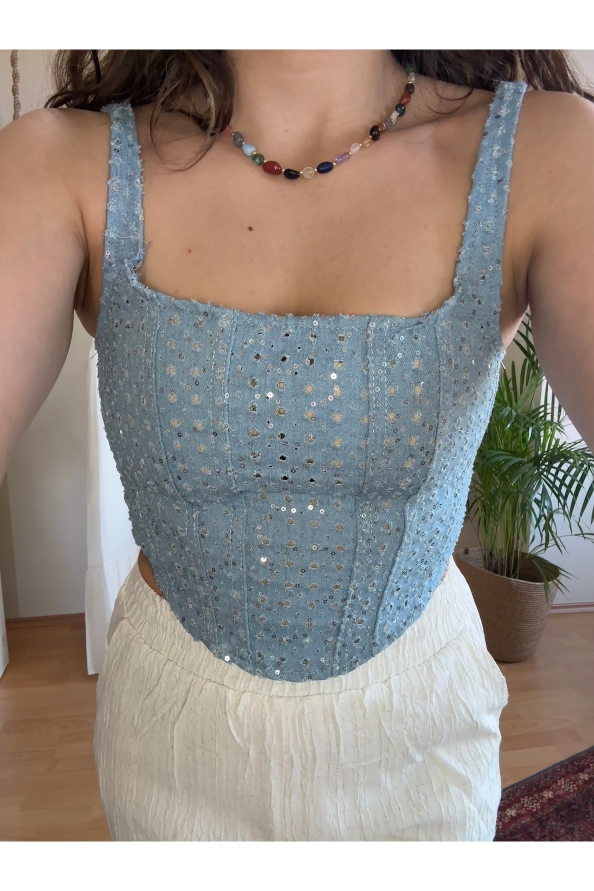 İşlemeli Kot Büstiyer - Ayarlanabilir Tasarım İşlemeli Kot Büstiyer - Ayarlanabilir Tasarım 36167011 40
