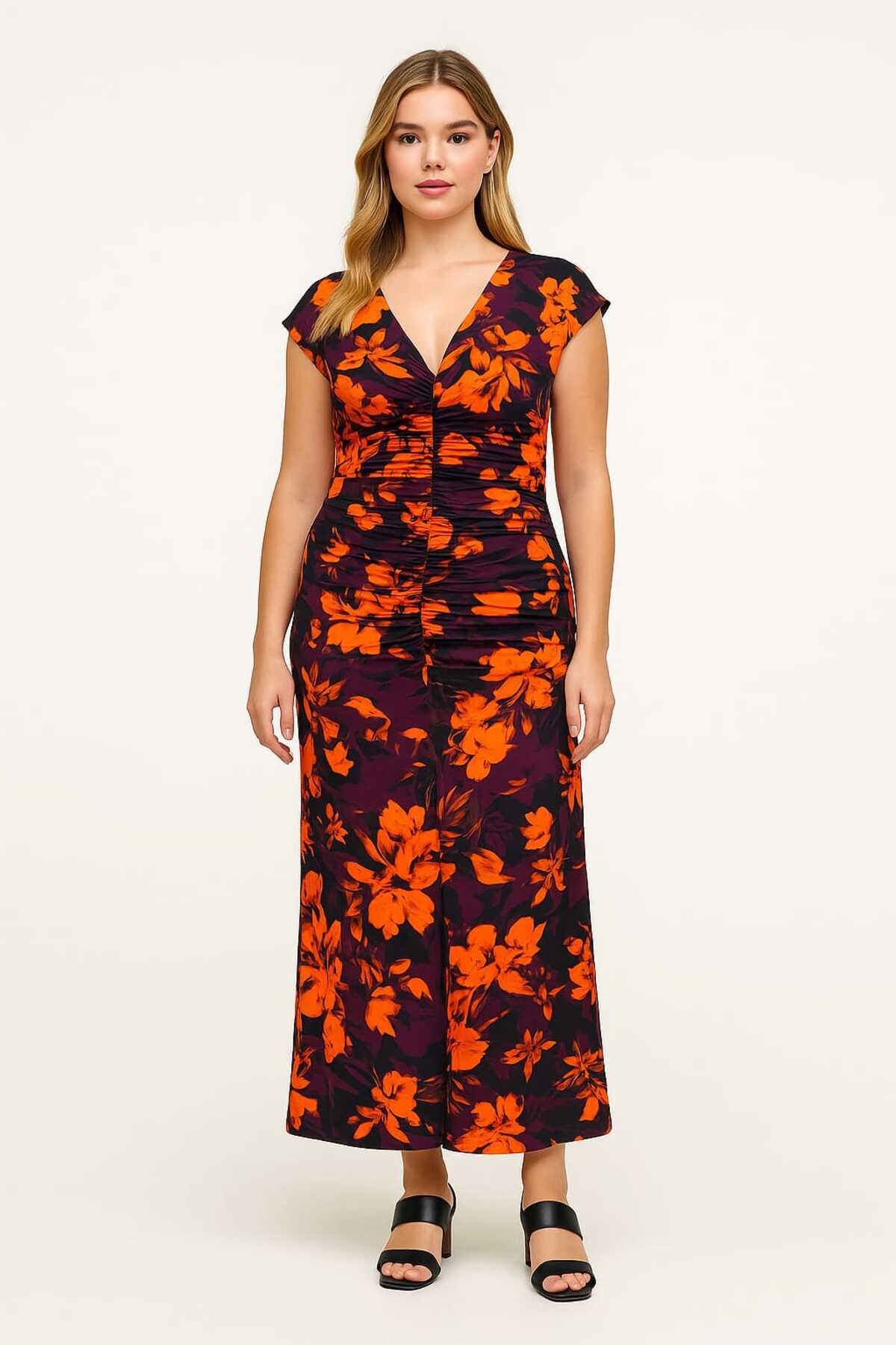 Kadın Büyük Beden Siyah, Çiçek Desenli, Belden Bağcıklı Astarlı Şifon Elbise 65N39026 Kadın Büyük Beden Siyah, Çiçek Desenli, Belden Bağcıklı Astarlı Şifon Elbise 65N39026 56