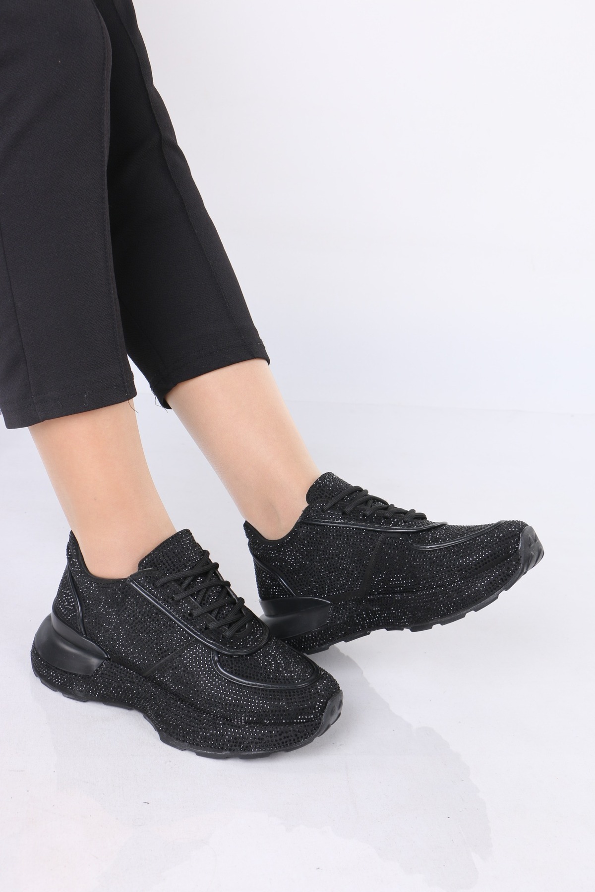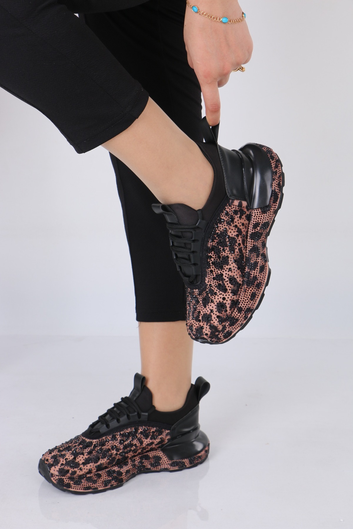 Kadın Spor Ayakkabı Taşlı Leopar desenli Ortopedik Taban Siyah Renkli Kadın Spor Ayakkabı Taşlı Leopar desenli Ortopedik Taban Siyah Renkli AC202500201 40