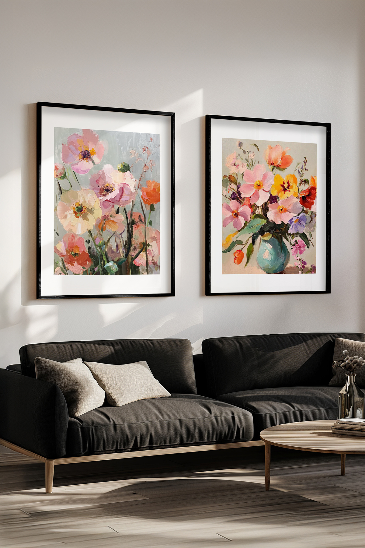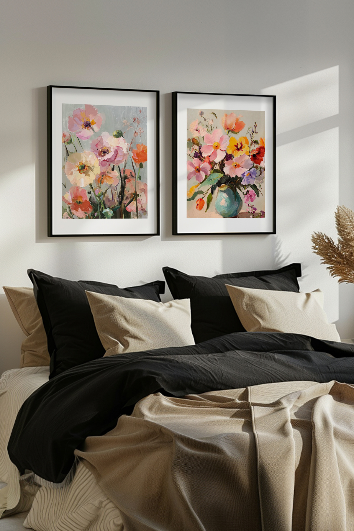 Yağlı boya efektli çiçekli tablo, siyah ahşap çerçeveli 2'li tablo seti Yuna123 Yağlı boya efektli çiçekli tablo, siyah ahşap çerçeveli 2'li tablo seti Yuna123 yuna123 50 x 70