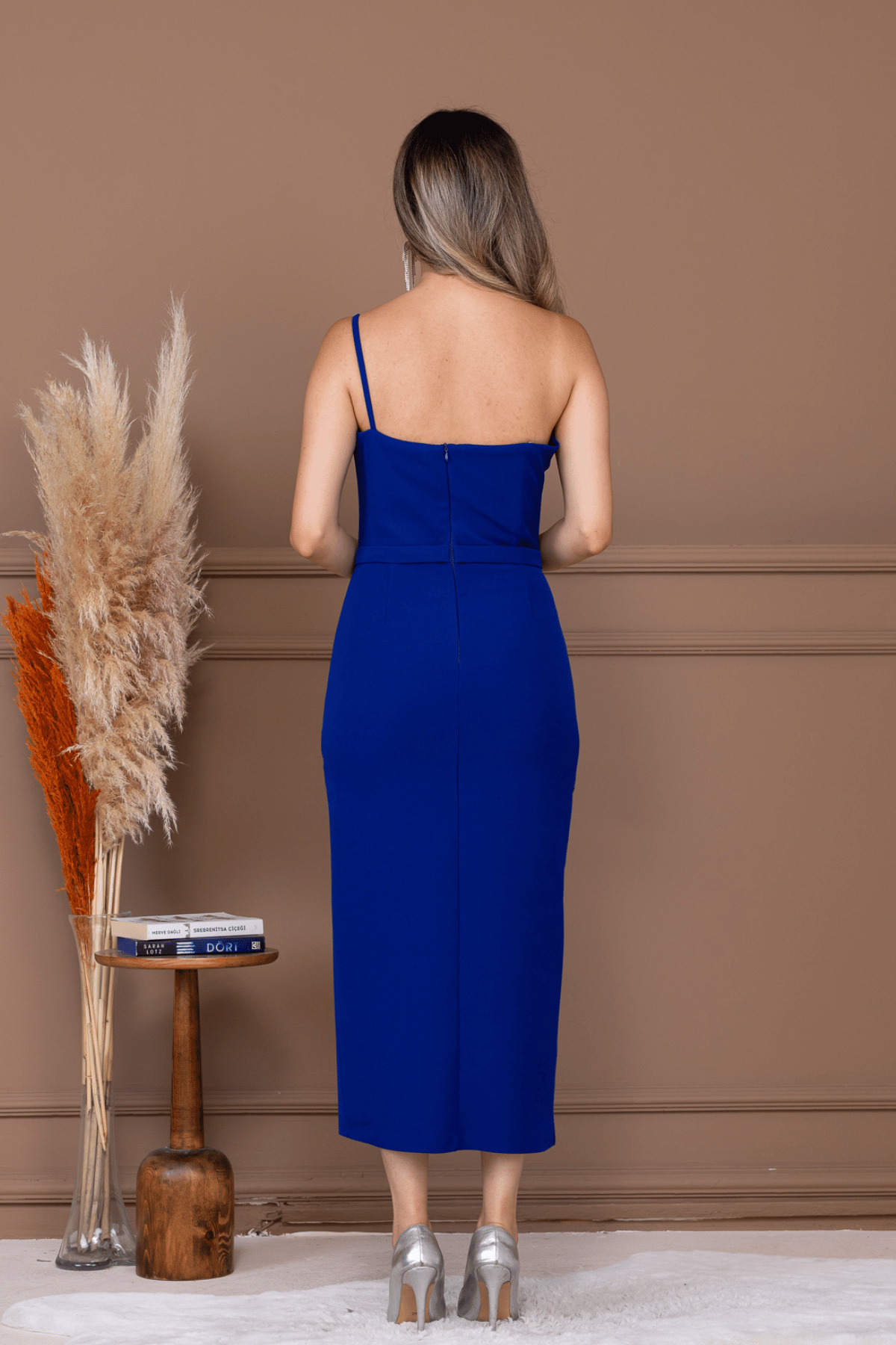 Atlas Kumaş Taş Detaylı Kalem Elbise - SAKS MAVİ Atlas Kumaş Taş Detaylı Kalem Elbise - SAKS MAVİ BB-GYM-136 42