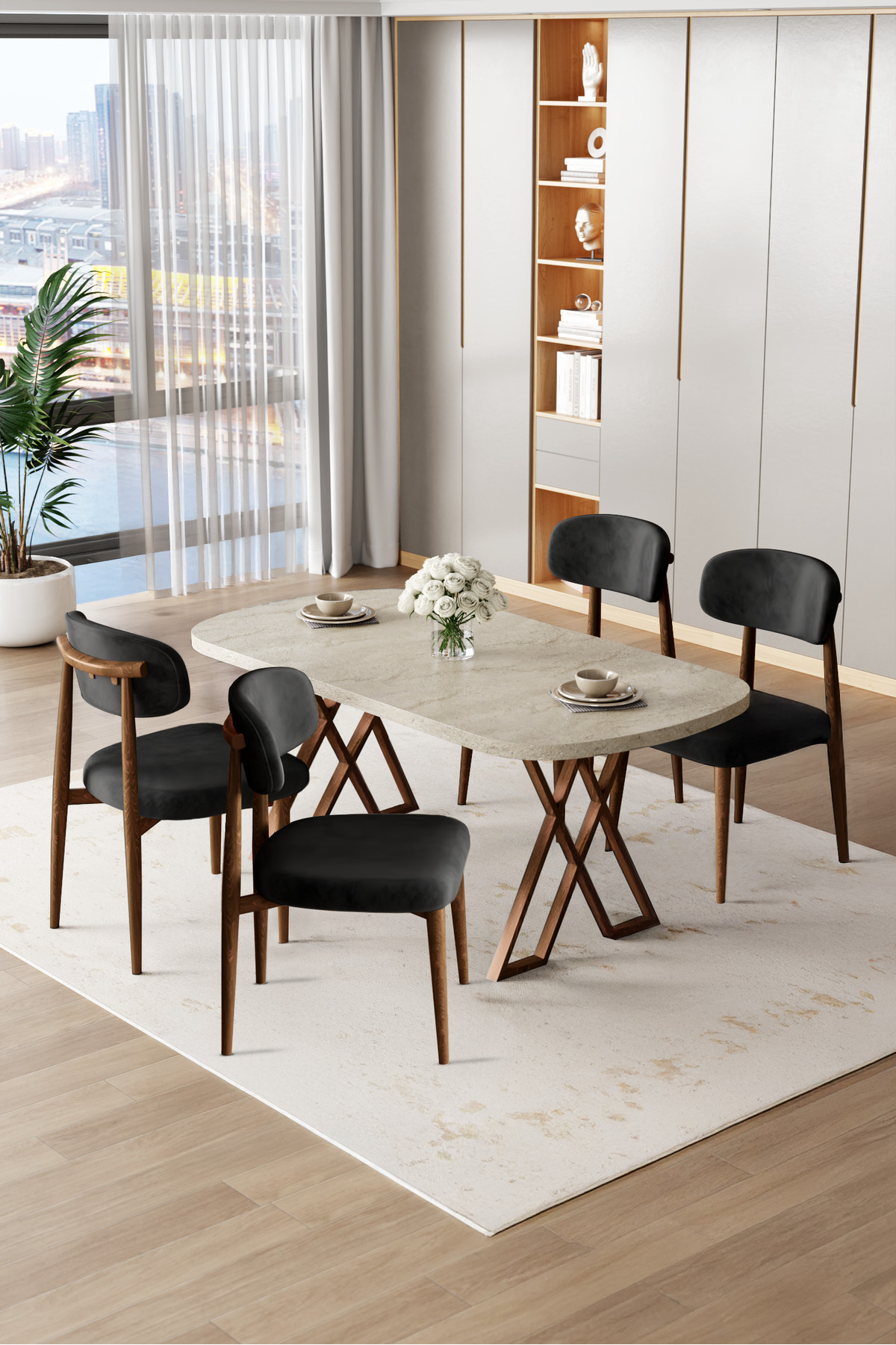 Jolin Serisi Mdf 90x168 Traverten Masa Takımı 4 Cappucino Ahşap Kaplama Metal Sandalye Jolin Serisi Mdf 90x168 Traverten Masa Takımı 4 Cappucino Ahşap Kaplama Metal Sandalye JOLİN04TRVTN تک سایز