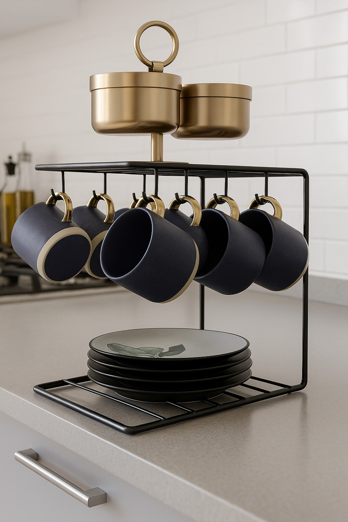 Siyah 6lı Kahve Fincan Askılığı Kupa Askısı Mutfak Düzenleyicisi Siyah 6lı Kahve Fincan Askılığı Kupa Askısı Mutfak Düzenleyicisi KAHVEFINCANLIK2021 تک سایز