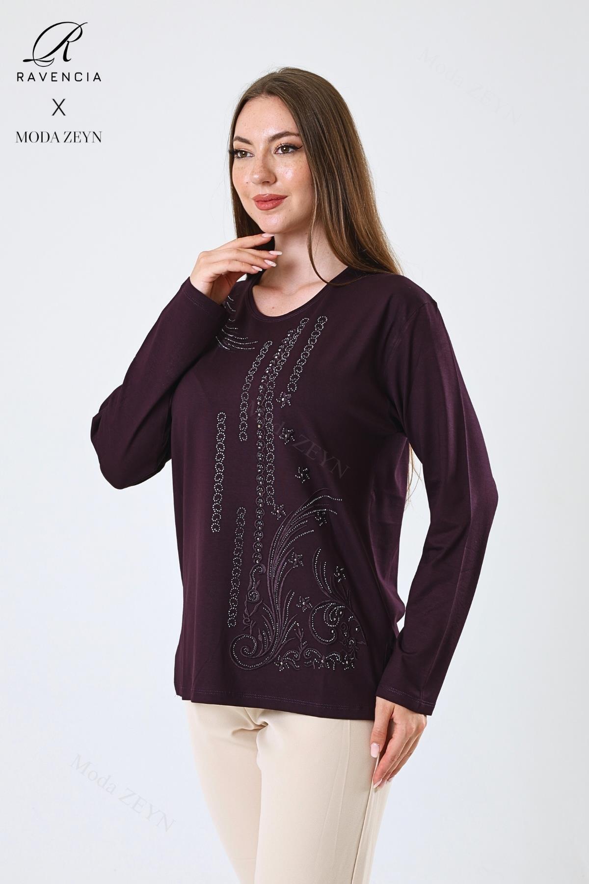 Kadın Orta Yaş Ve Üzeri Viskon Halka Şerit Desen Taşlı Işlemeli Likralı Bordo Anne Penye Bluz Kadın Orta Yaş Ve Üzeri Viskon Halka Şerit Desen Taşlı Işlemeli Likralı Bordo Anne Penye Bluz MZ018HD 2XL