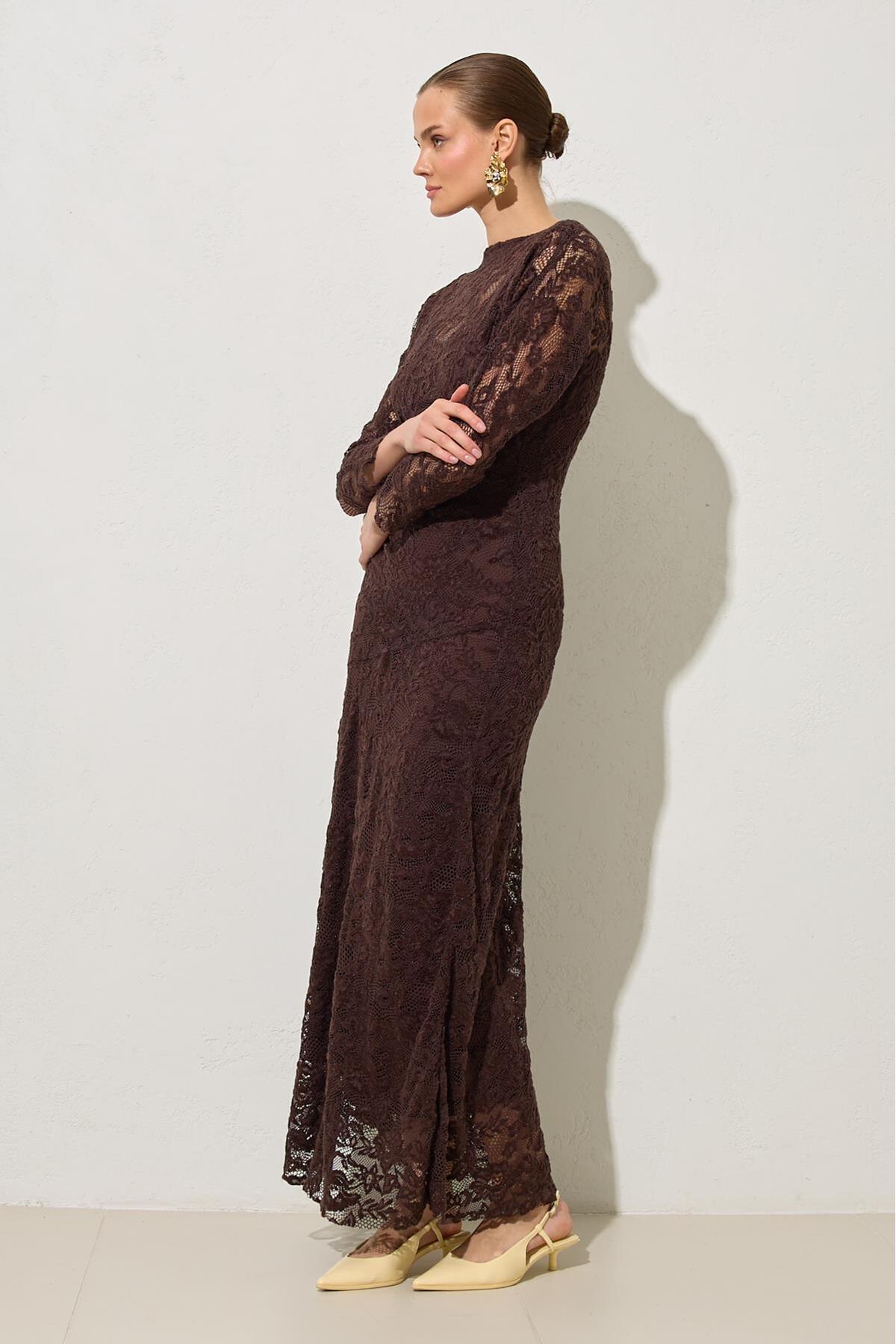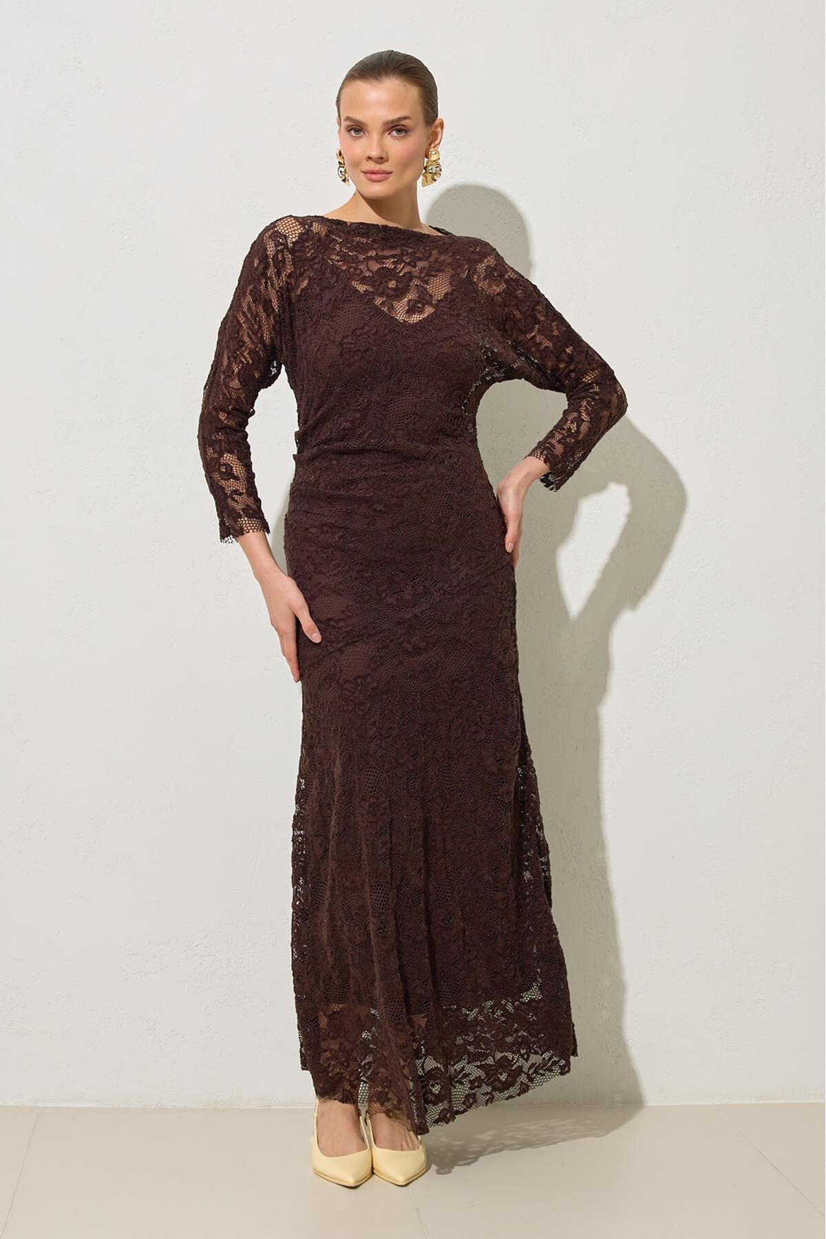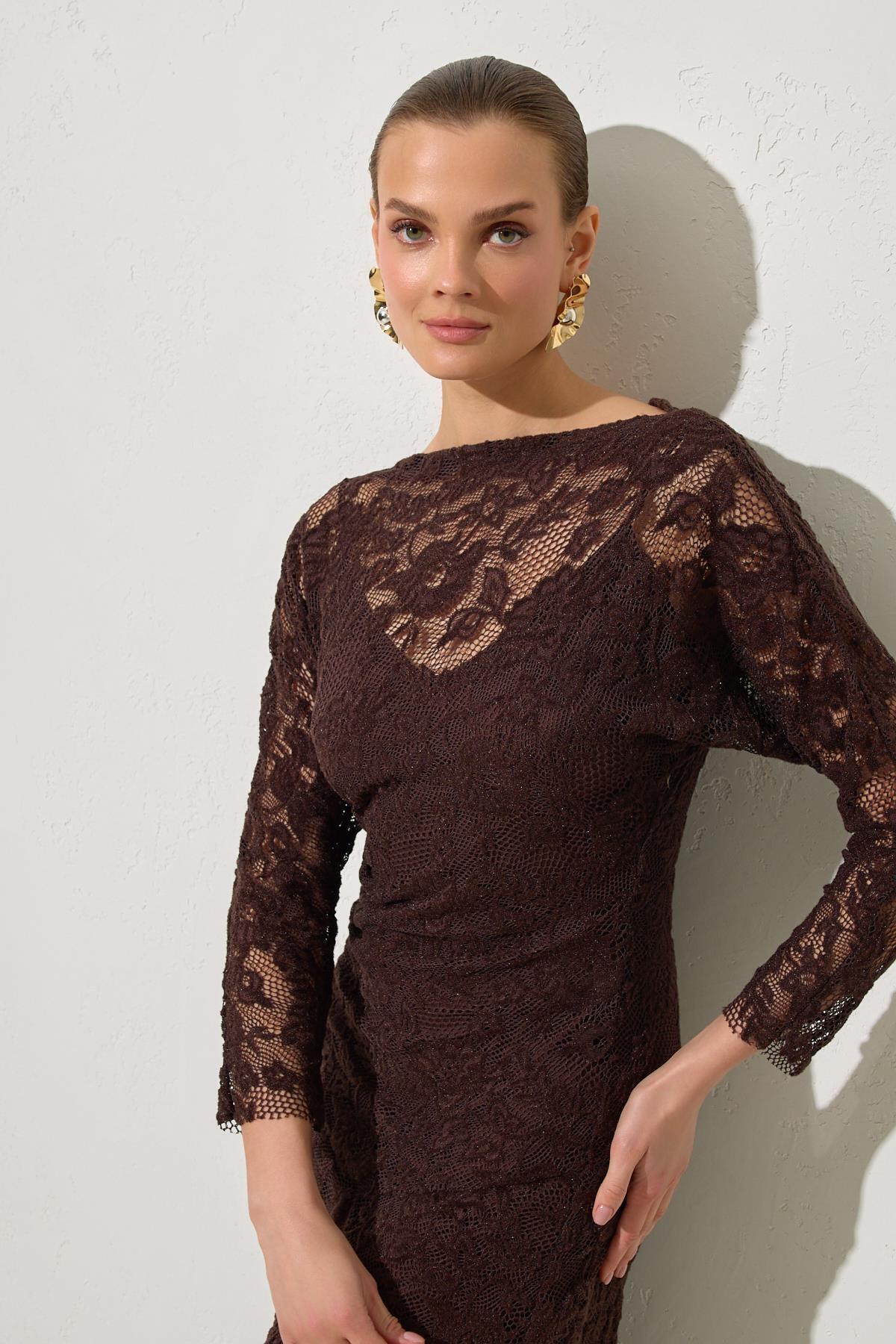 Acı-Kahve Tam Kalıp Dantel Detaylı Midi Boy Elbise Acı-Kahve Tam Kalıp Dantel Detaylı Midi Boy Elbise ST20250W4030081 XL