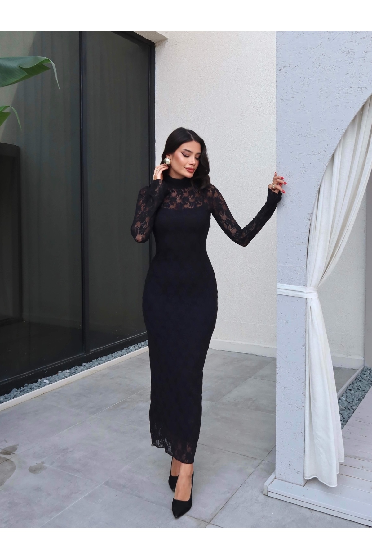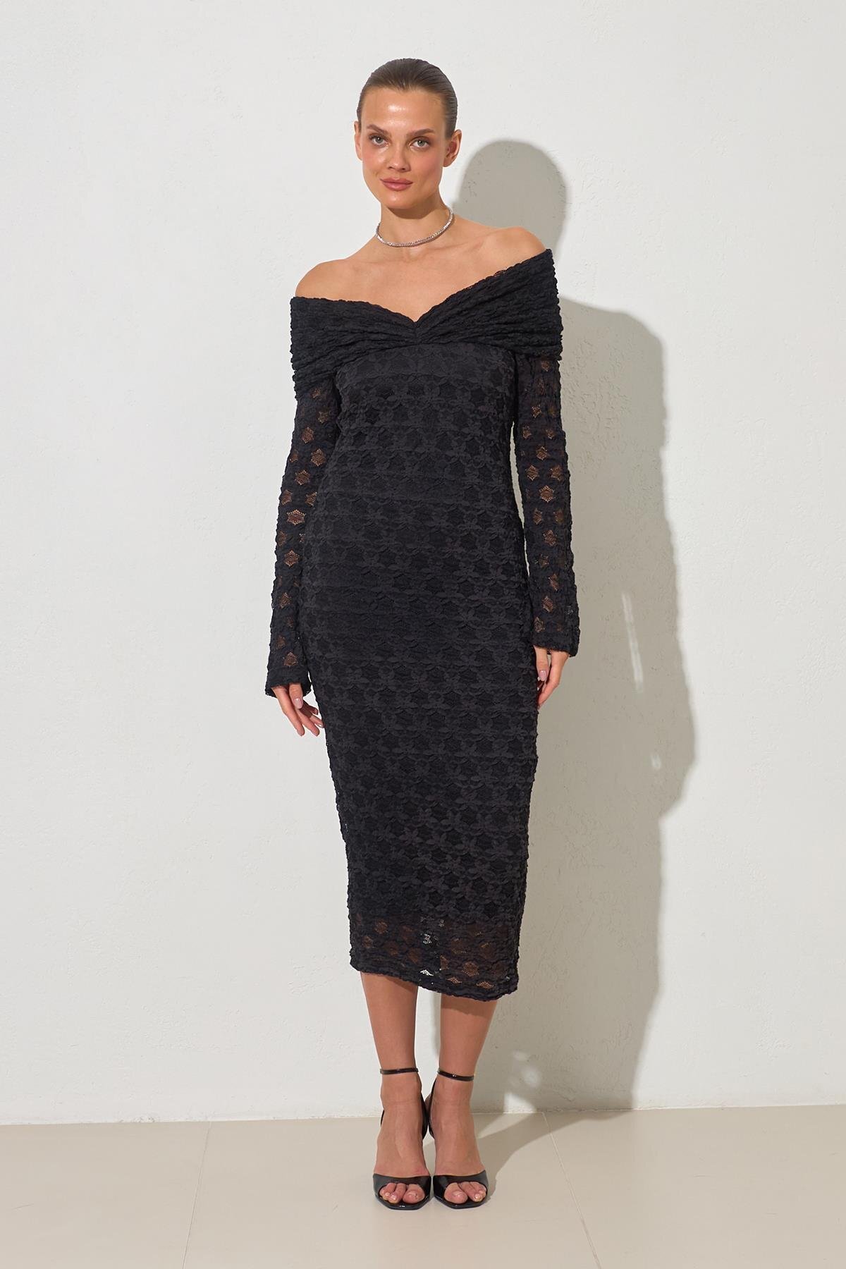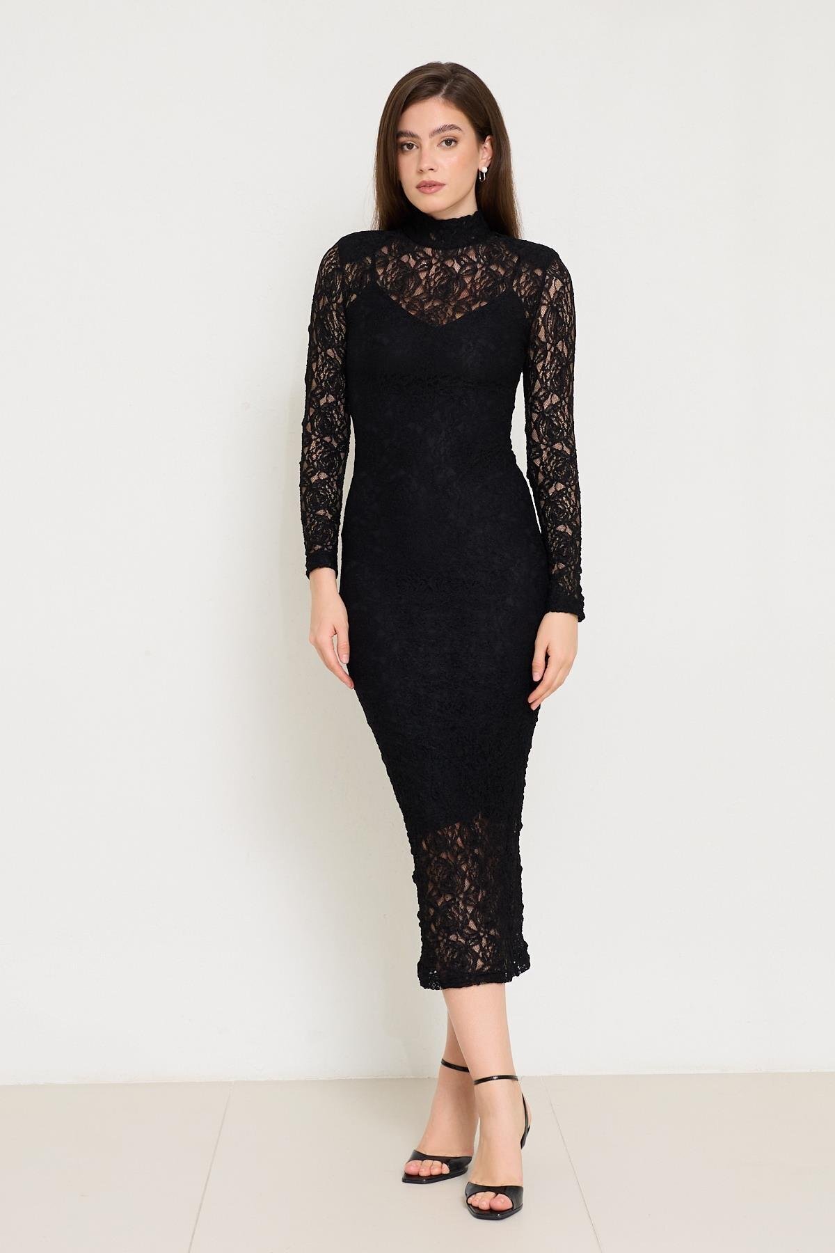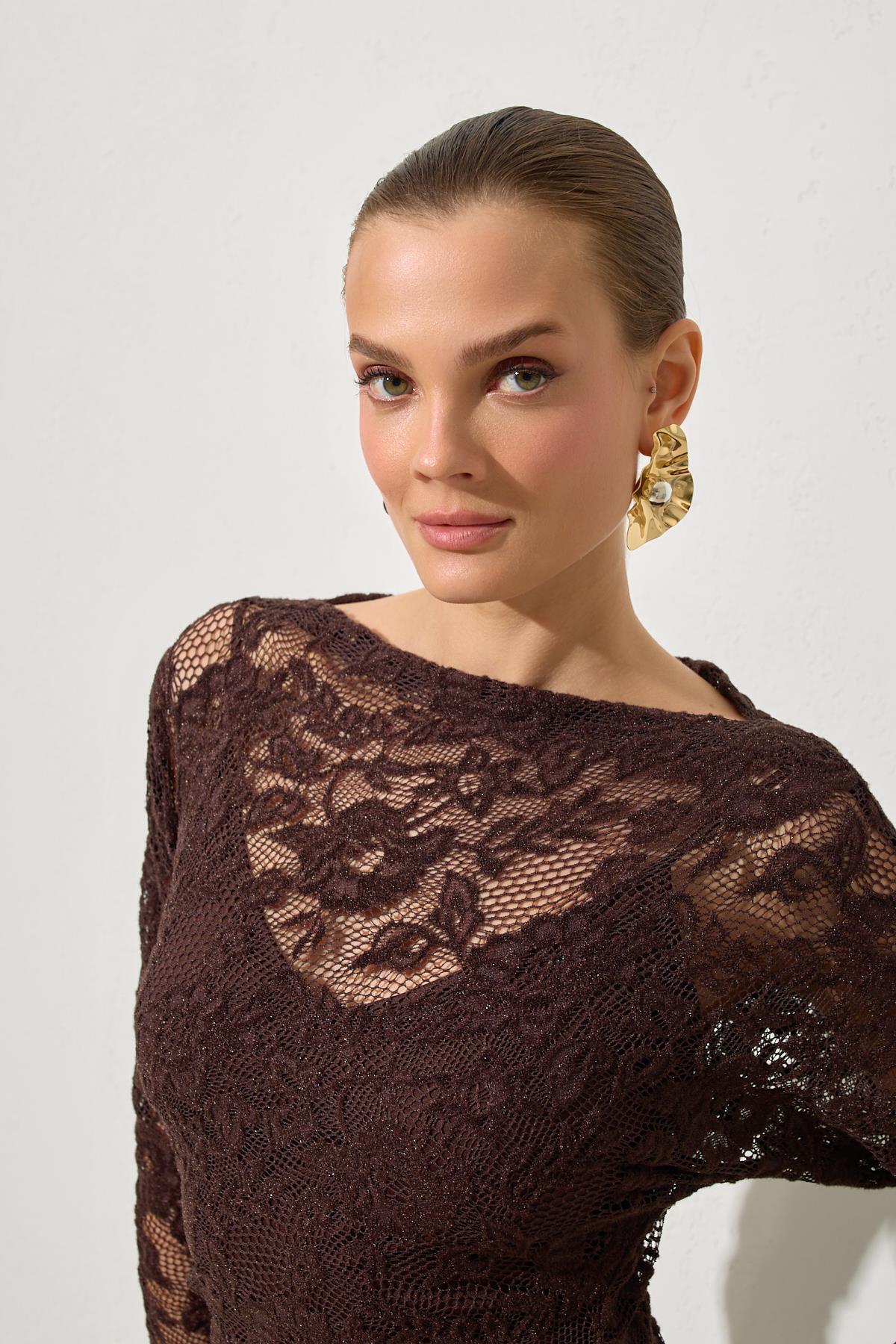 Acı-Kahve Tam Kalıp Dantel Detaylı Midi Boy Elbise Acı-Kahve Tam Kalıp Dantel Detaylı Midi Boy Elbise ST20250W4030081 XL