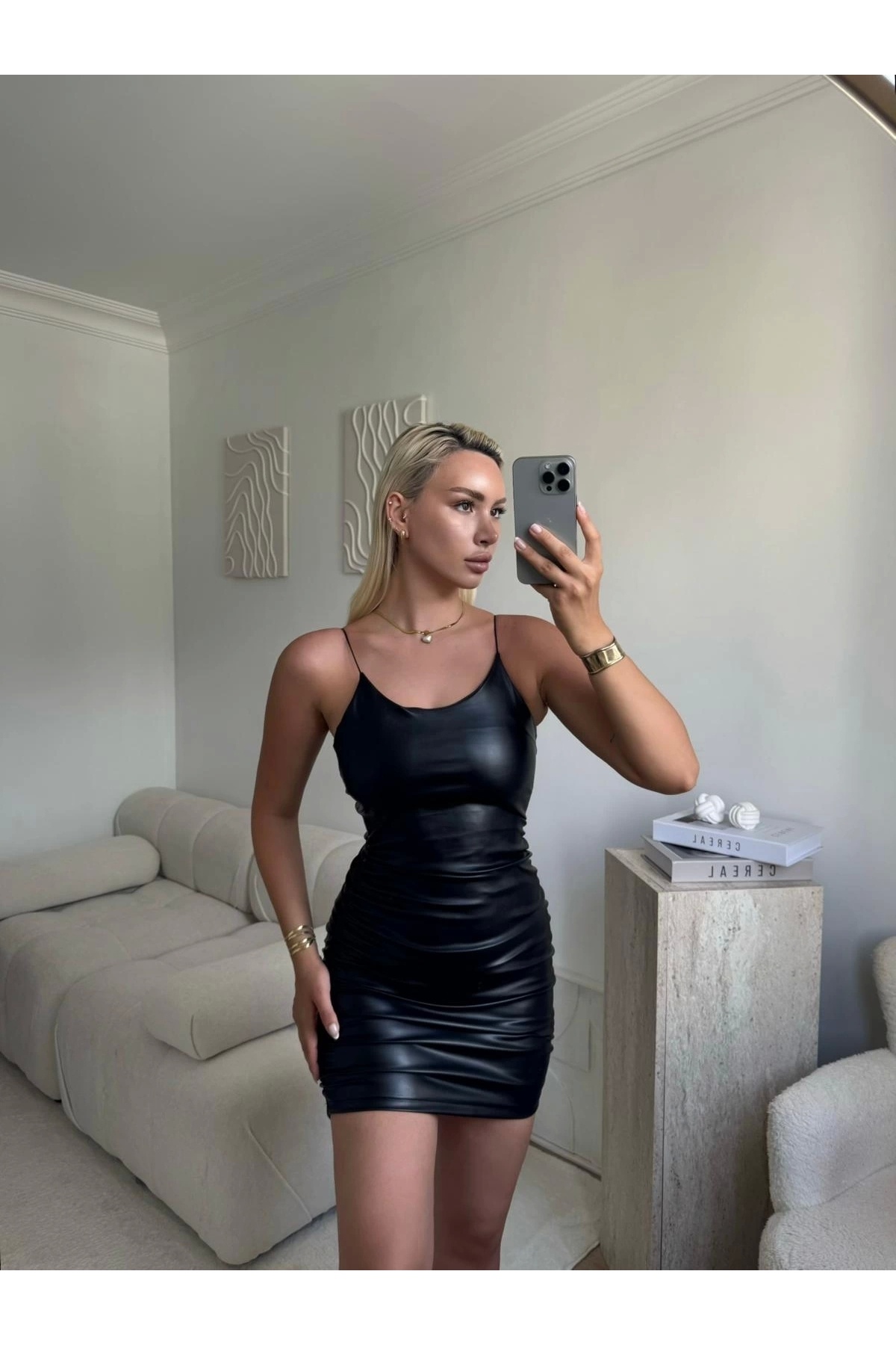 Deri Elbise Boğazlı Hakim Yaka Komple Fermuar Kapamalı Deri Elbise Boğazlı Hakim Yaka Komple Fermuar Kapamalı kahvesiyahminietekli78juvfh XXS